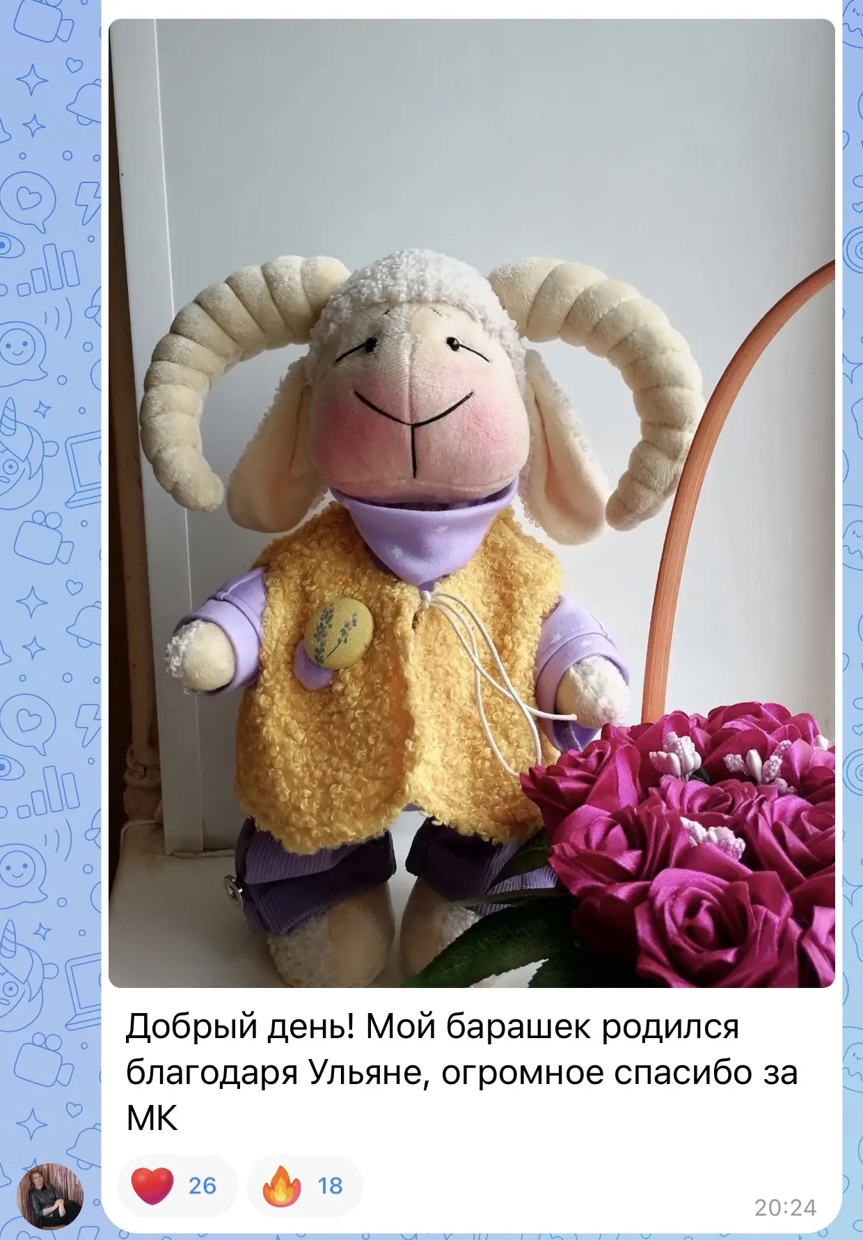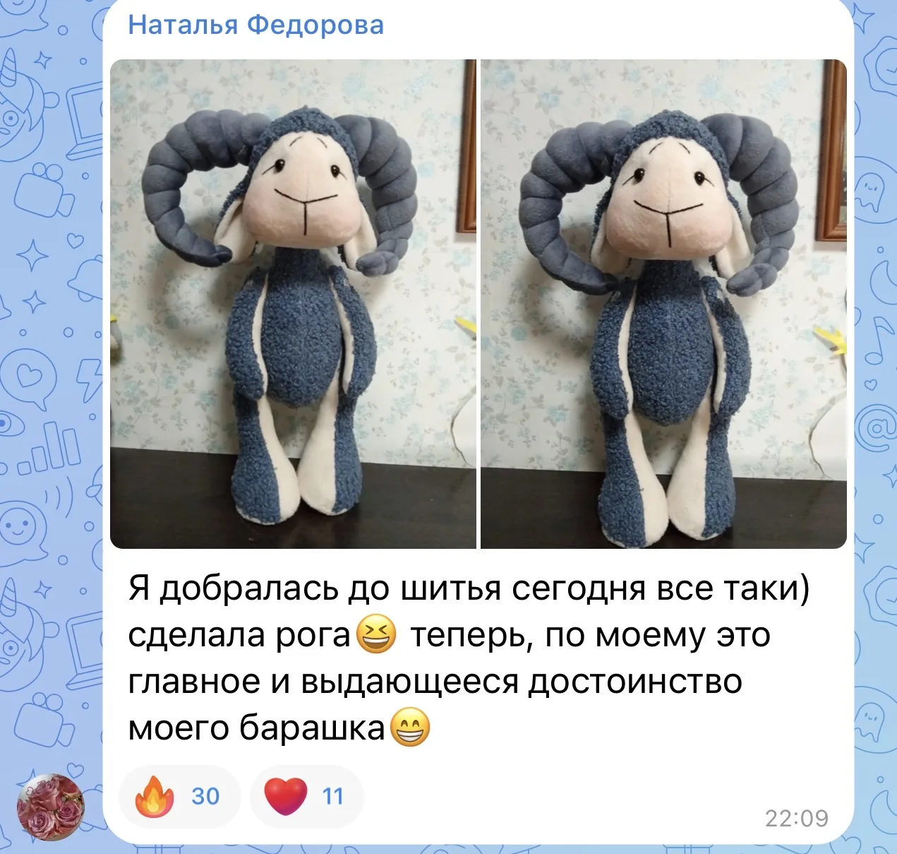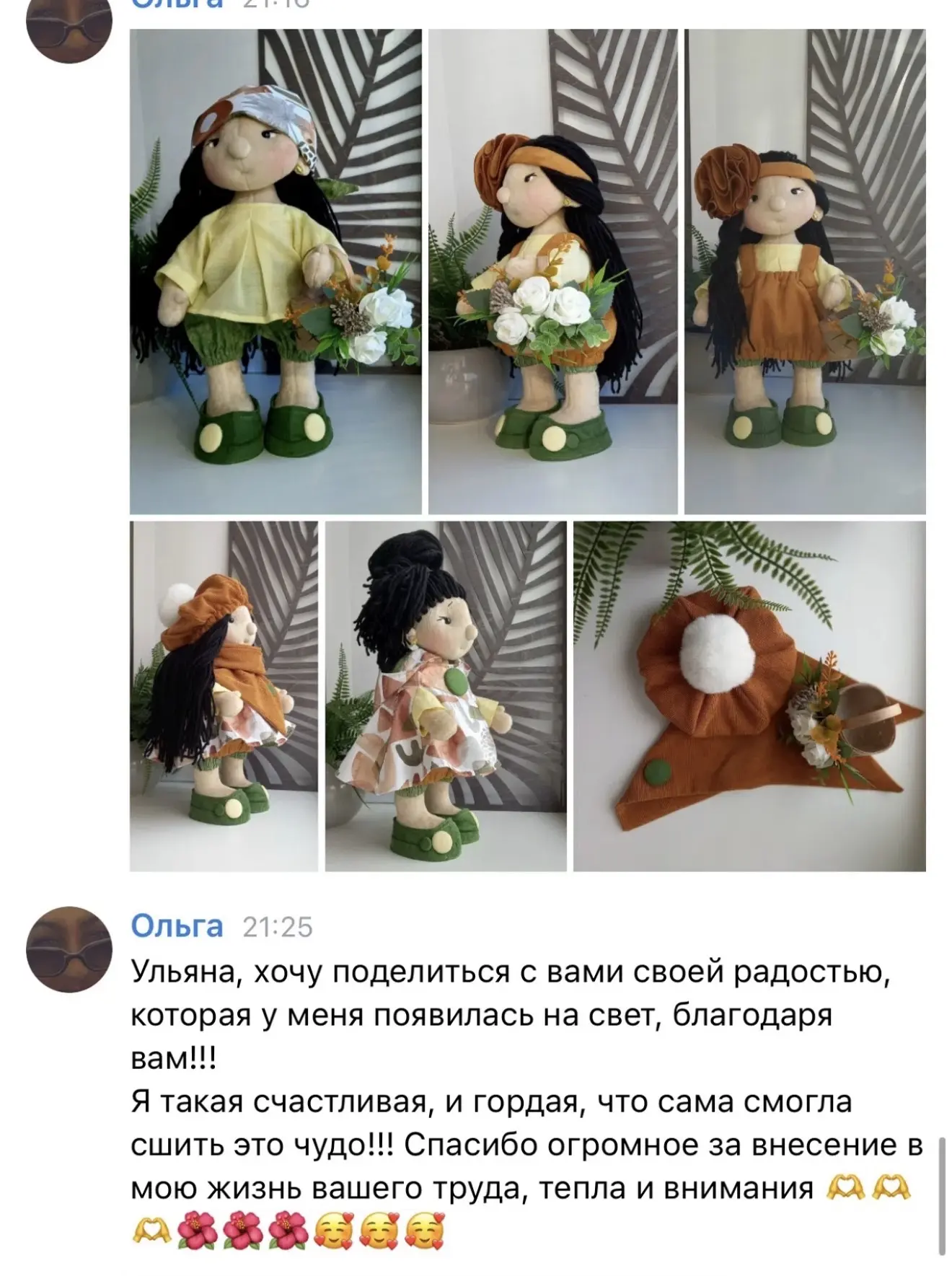 💬 «Спасибо за подробные видеоуроки, помощь и поддержку на каждом этапе пошива! Моя мечта шить игрушки претворилась в жизнь!» — Наталья.