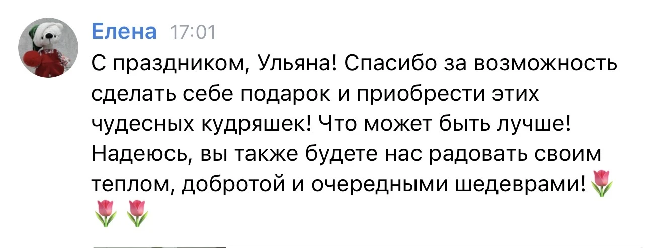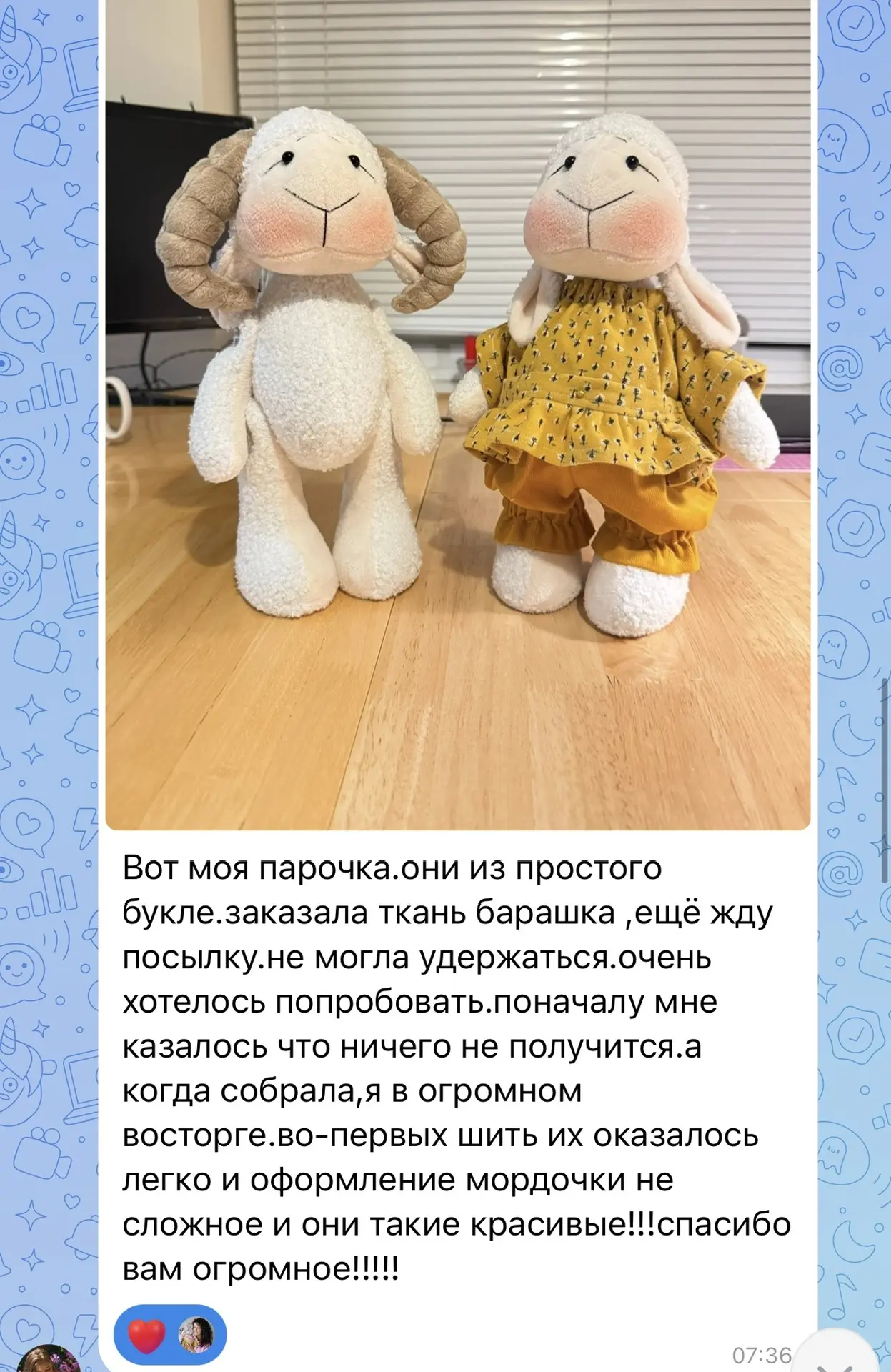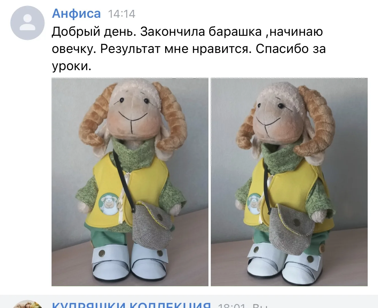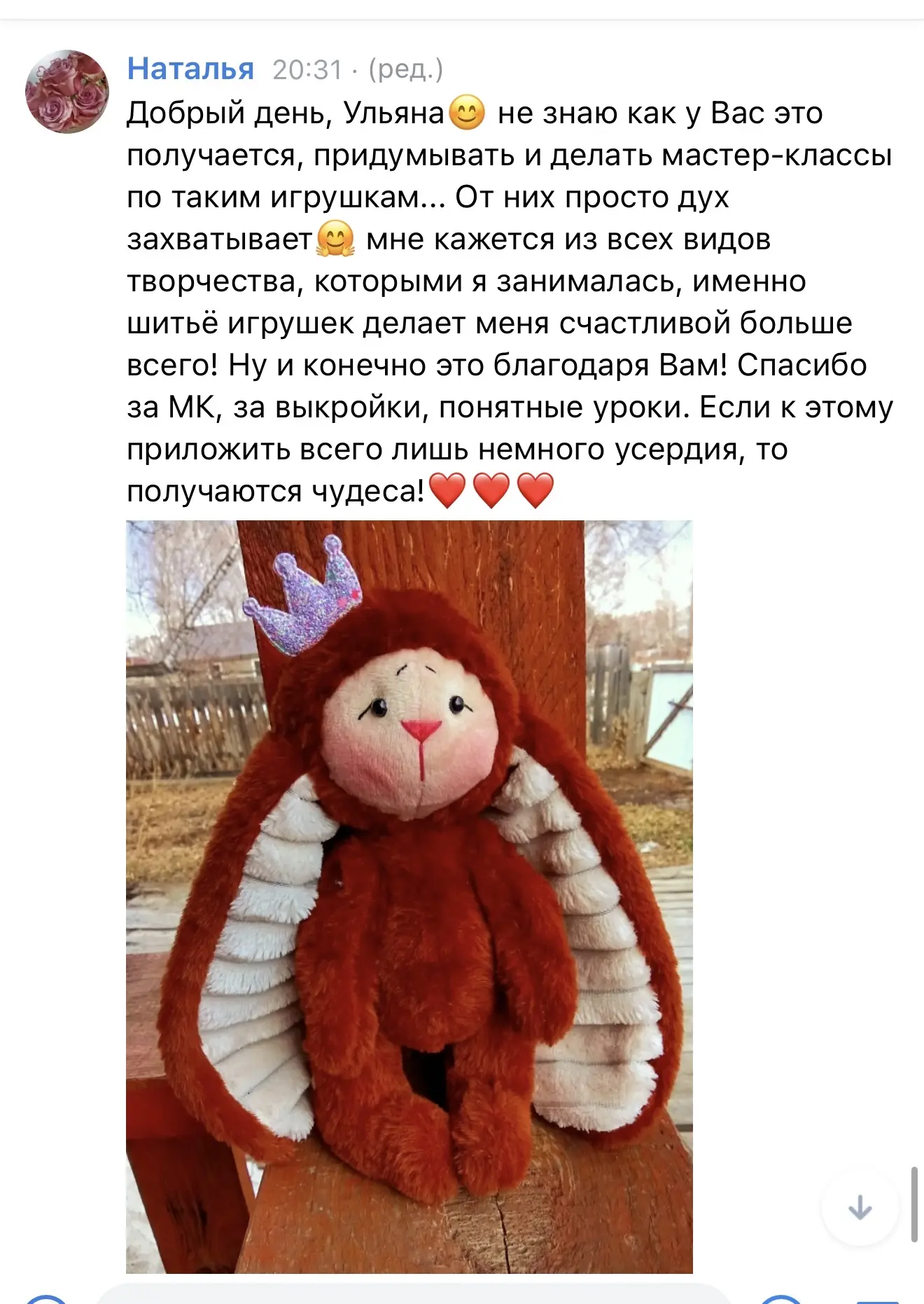 💬 «Спасибо за подробные видеоуроки, помощь и поддержку на каждом этапе пошива! Моя мечта шить игрушки претворилась в жизнь!» — Наталья.