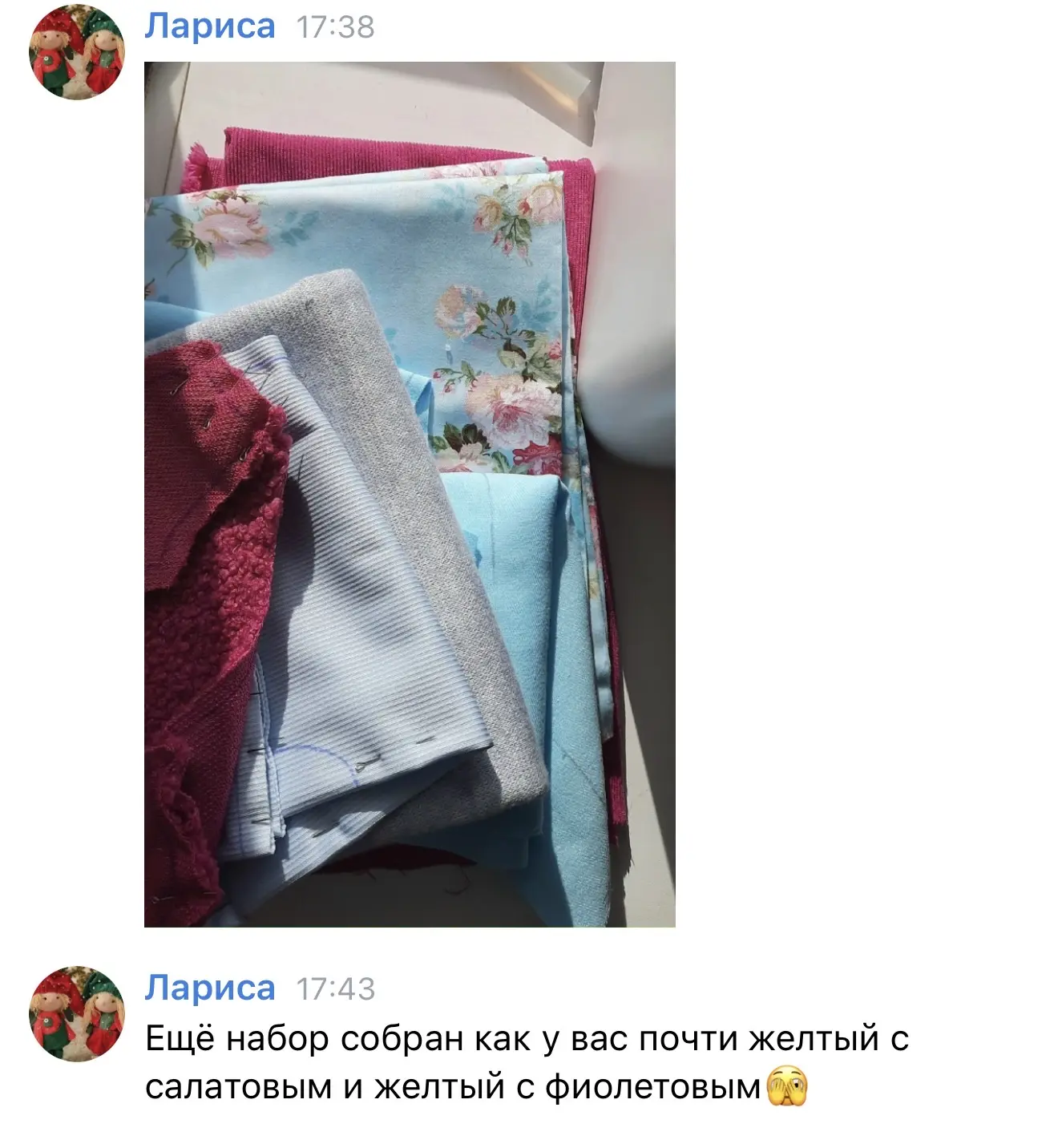 В финале я проведу розыгрыш наборов тканей и МК среди ВСЕХ участниц по окончанию пошива!