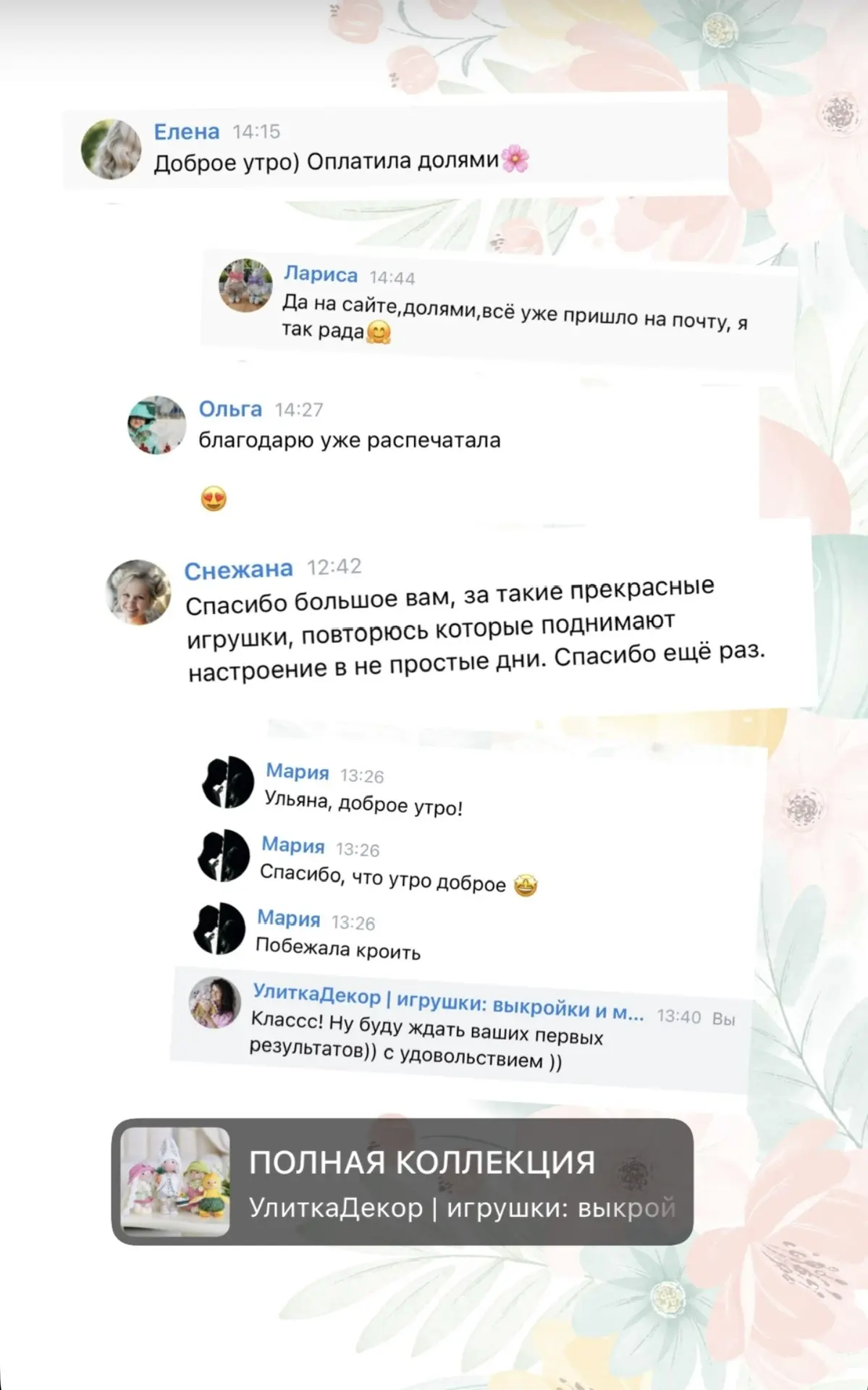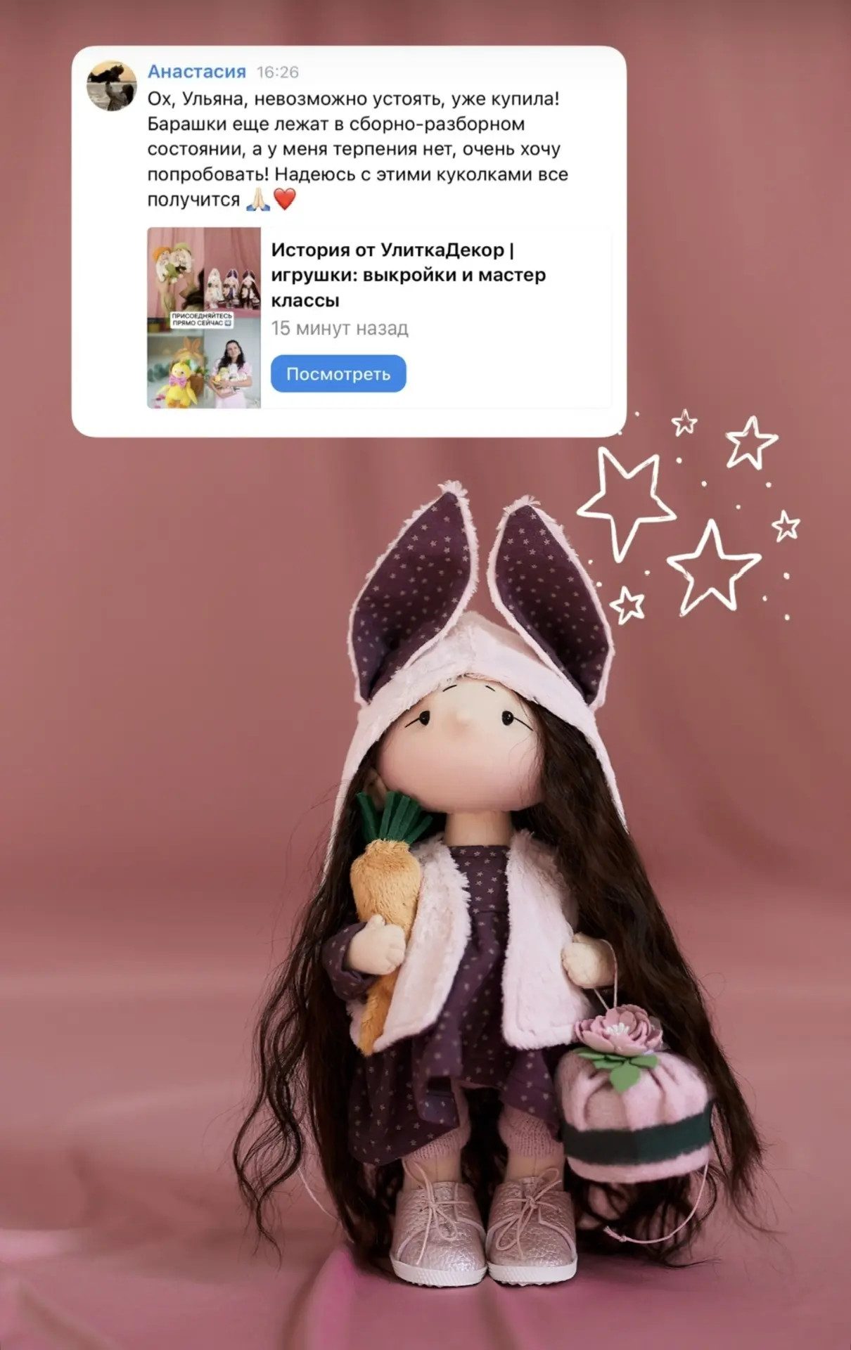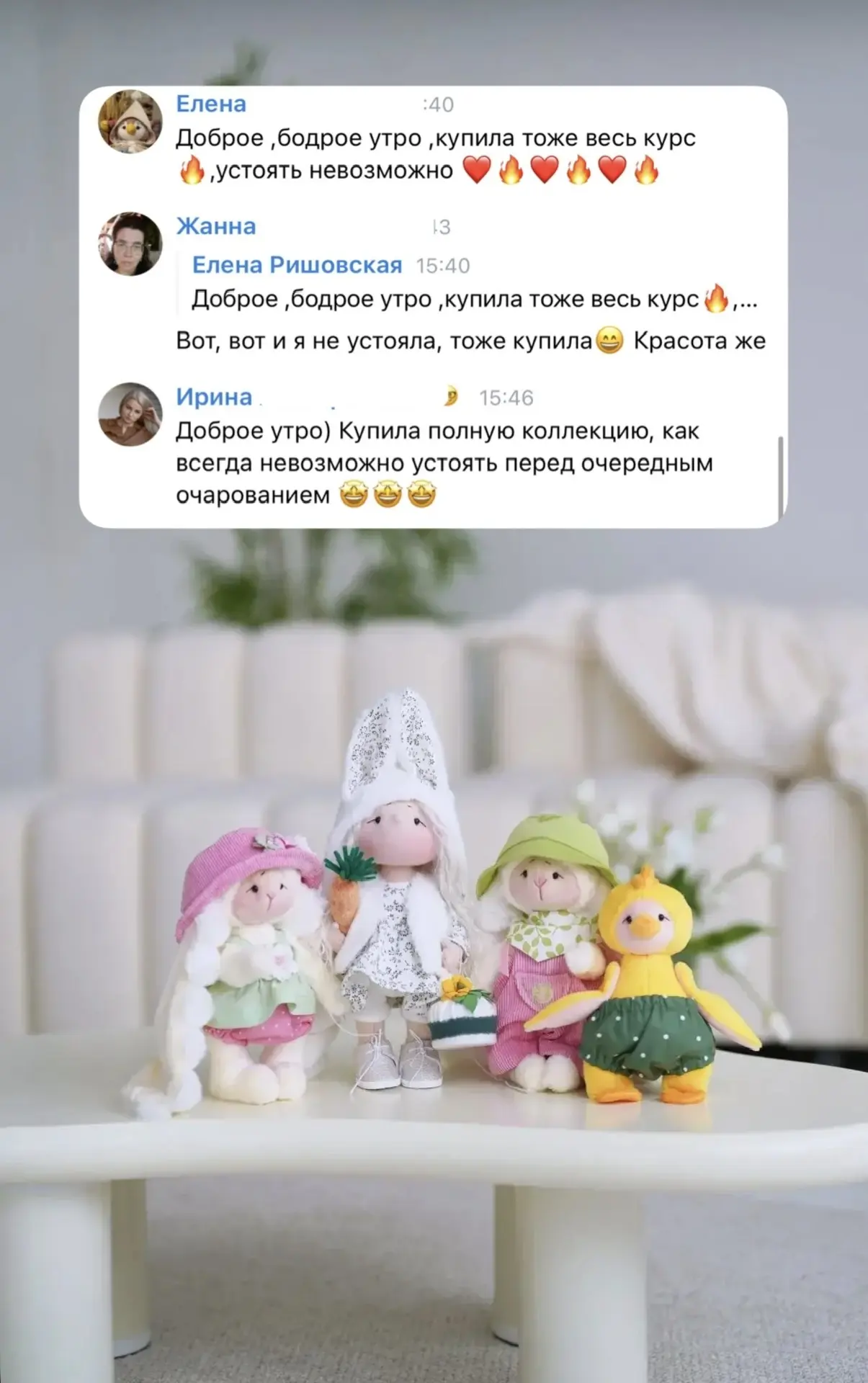 💬 «Все уроки построены так, что понятны даже тем, кто впервые решил шить игрушки, чувствуется рука педагога» — Надежда.