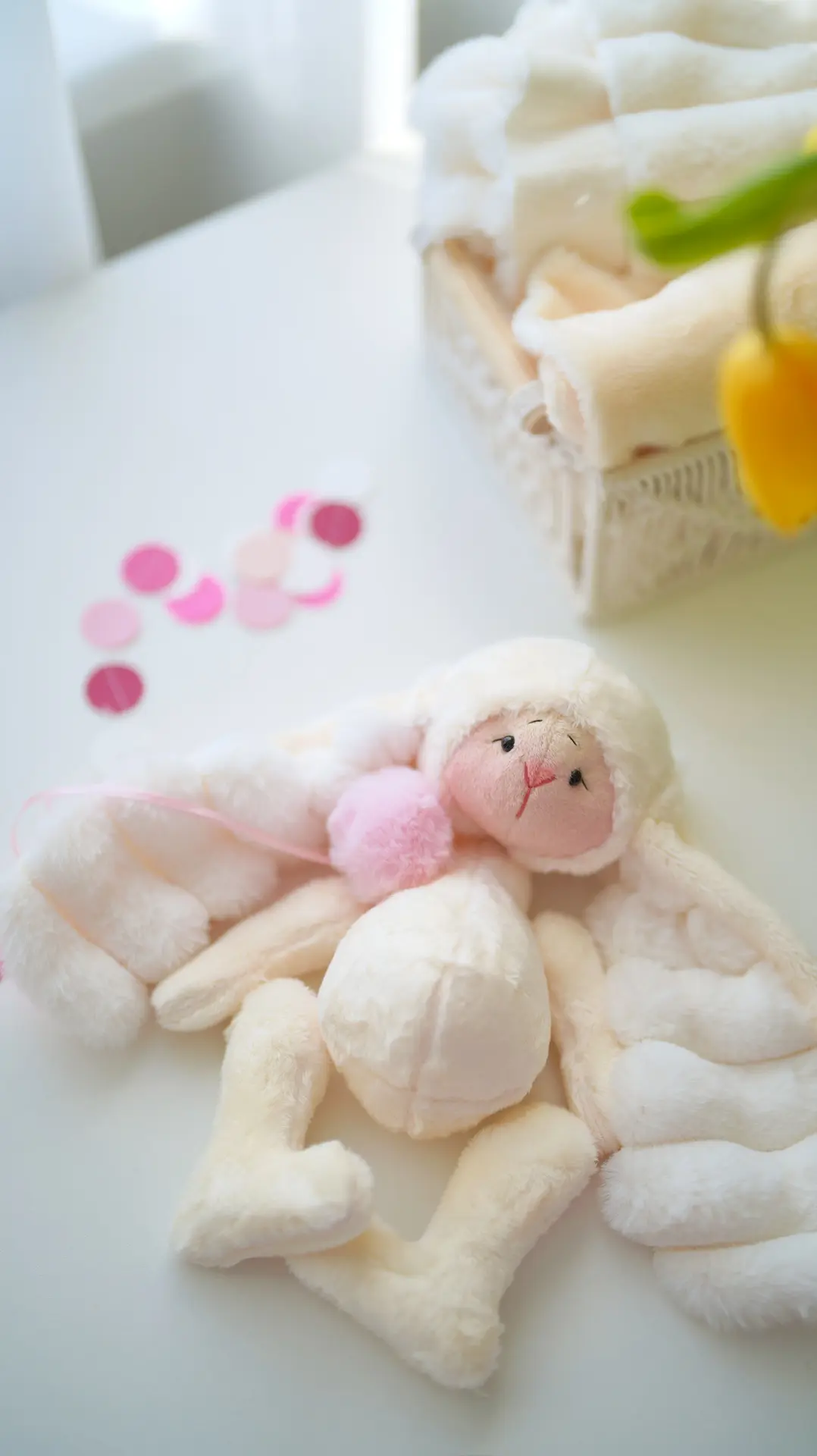 Она выполнена из мягкого фактурного меха букле, который перекликается с «шерсткой» самого барашка.