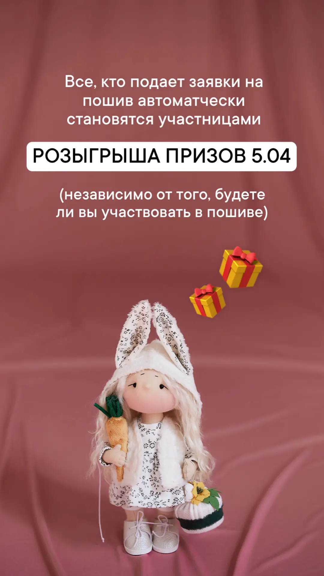 на финале - розыгрыше пошива «ВЕСЕННИЙ КРОЛИК», который пройдет в прямом эфире в МОЕЙ ГРУППЕ ВК