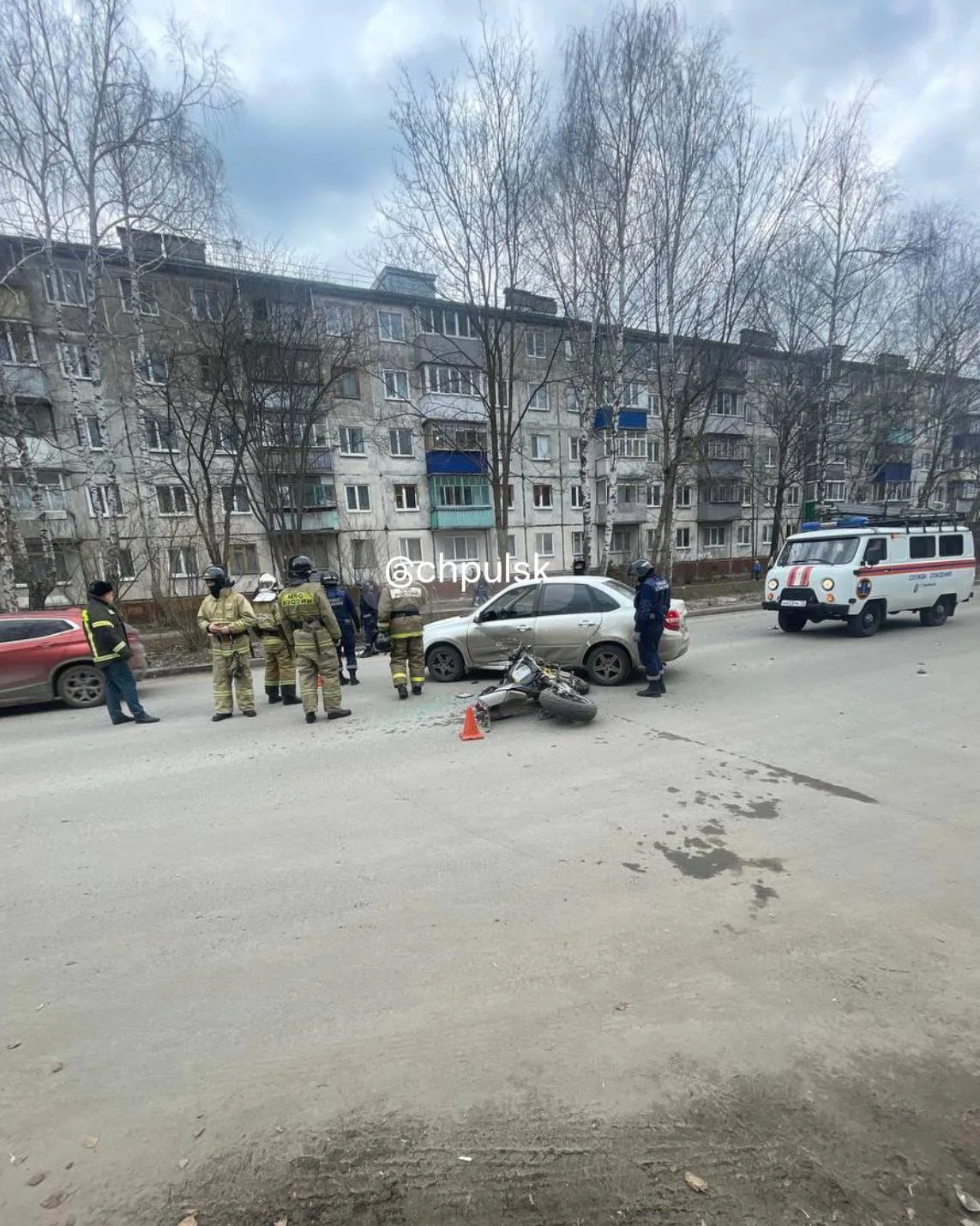 19-летний водитель мотоцикла Aprilia Shiver 750 госпитализирован после опрокидывания и последующего столкновения с «Ладой Грантой»