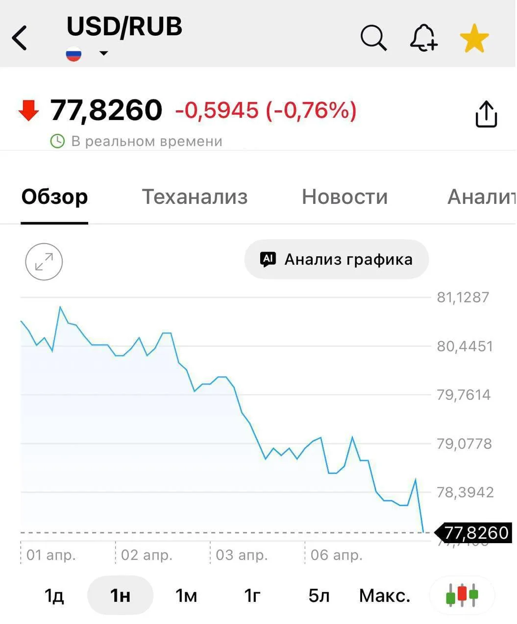 Доллар упал до 77₽