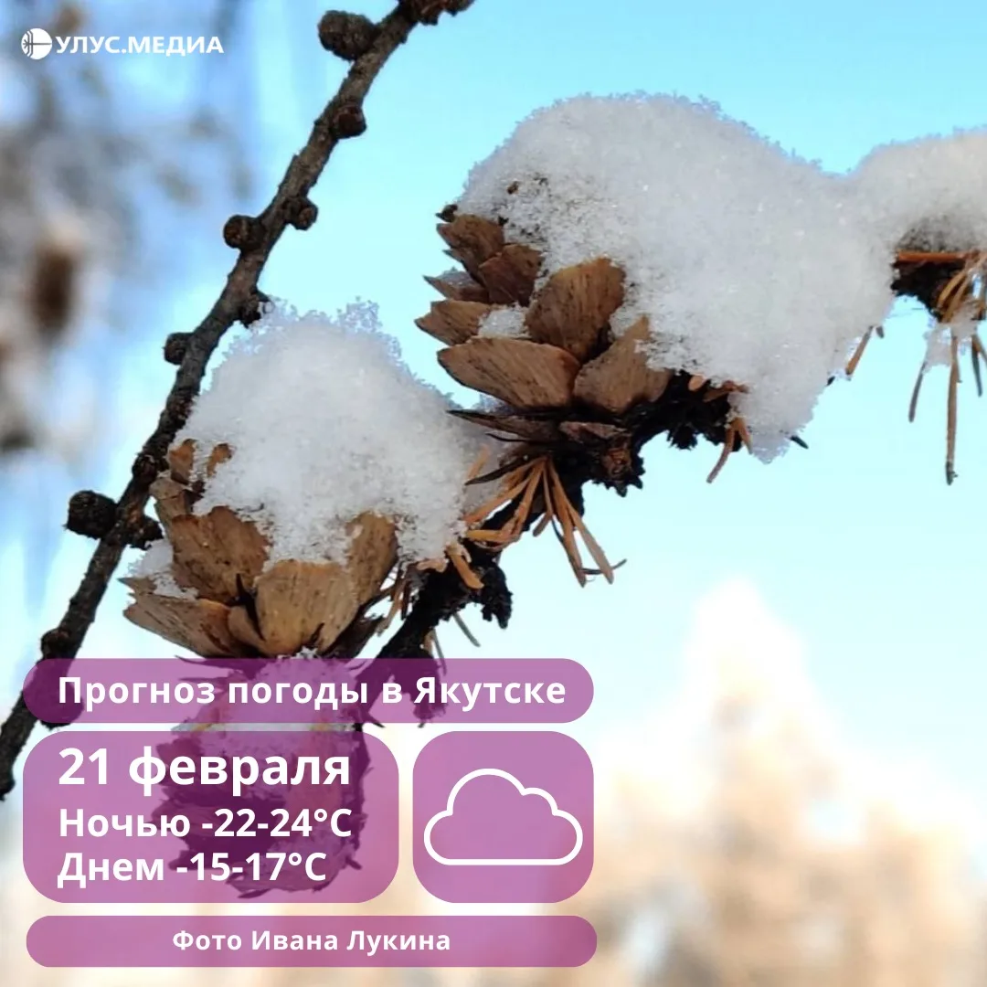 🌡️ В Якутск ночью ожидается -29-31°, днем -23-25°. Осадков не прогнозируется, ветер западный 2–7 м/с.
