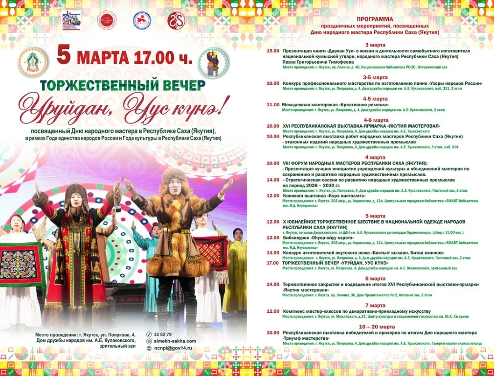 🔹🔹 5 марта в Якутии пройдут торжественные мероприятия, приуроченные к празднованию Дня народного мастера.
