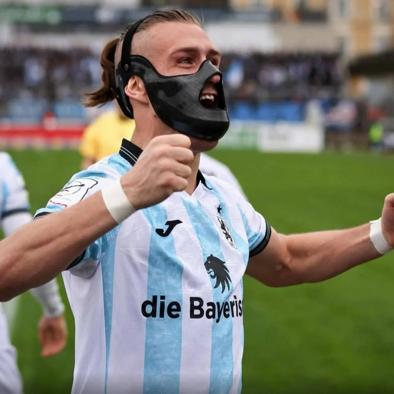 👀 Новая защитная маска игрока «Мюнхен 1860» Сигурда Хаугена. Маска, похоже, выполнена в стиле Ганнибала Лектора