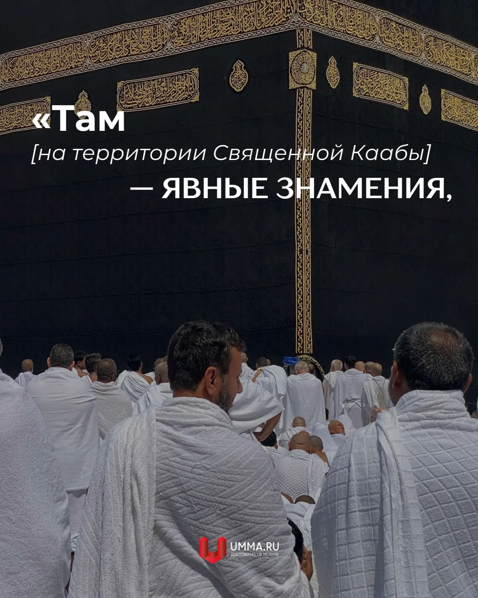 [К примеру] место Ибрахима (Авраама). <…> Паломничество к Дому [Священной Каабе] — долг для людей пред Богом, тех из них, кто в состоянии это сделать» (см. Св. Коран, 3:97).