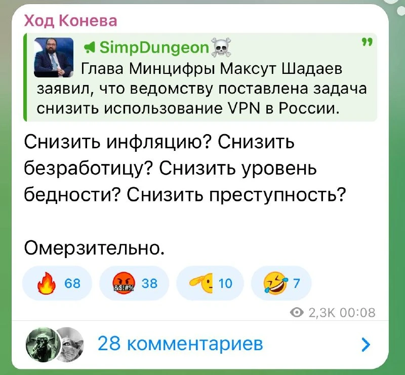 Миш, а как Шадаев будет инфляцию и преступность то снижать?