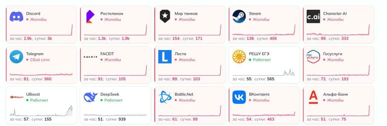 Интернет в России лег спать — понедельник все таки тяжелый день.