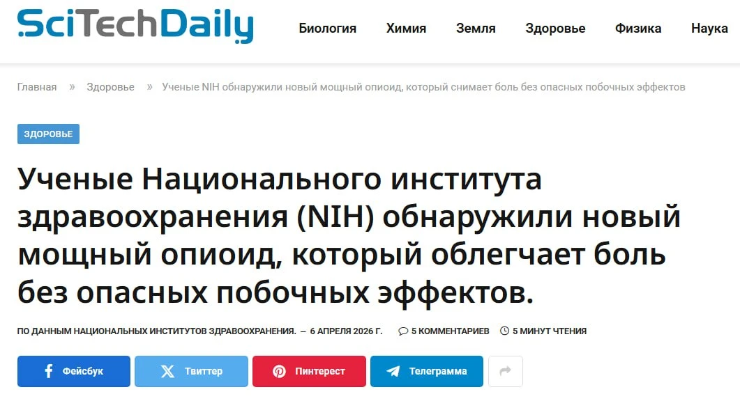 Мониторинг интернета принес нам фееричное: ученые из National Institutes of Health (США) сделали новый опиоид — сильный, но якобы без опасных побочек.