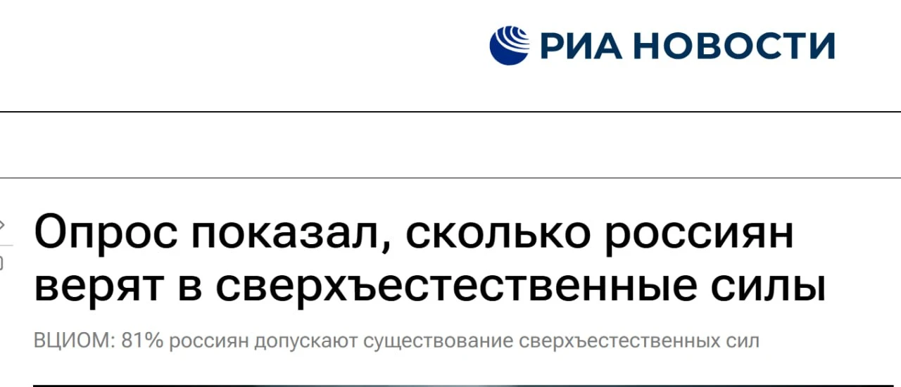 Также, согласно результатам опроса, 85% россиян обращались к магическим практикам. Половина (50%) опрошенных допускают существование домового.
