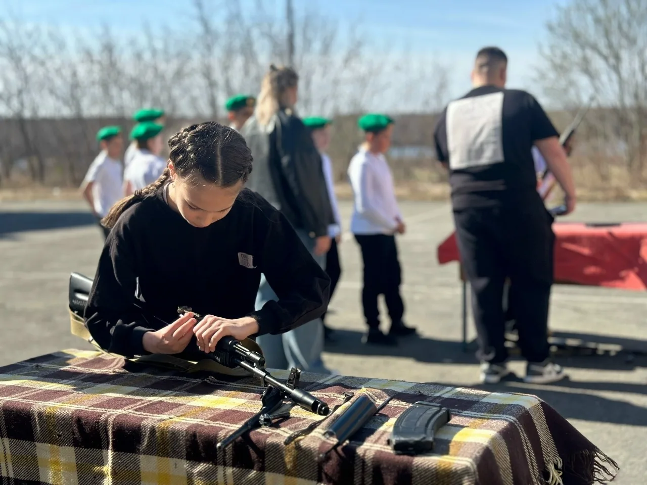💪 Средняя и старшие группы (11–13 и 14–17 лет) выполняли командные и индивидуальные испытания по условно-военным специальностям. Участники 31 команды средней и 46 команд старшей групп осваивают роли командиров, связистов, военкоров, операторов БПЛА, медиков и штурмовиков.