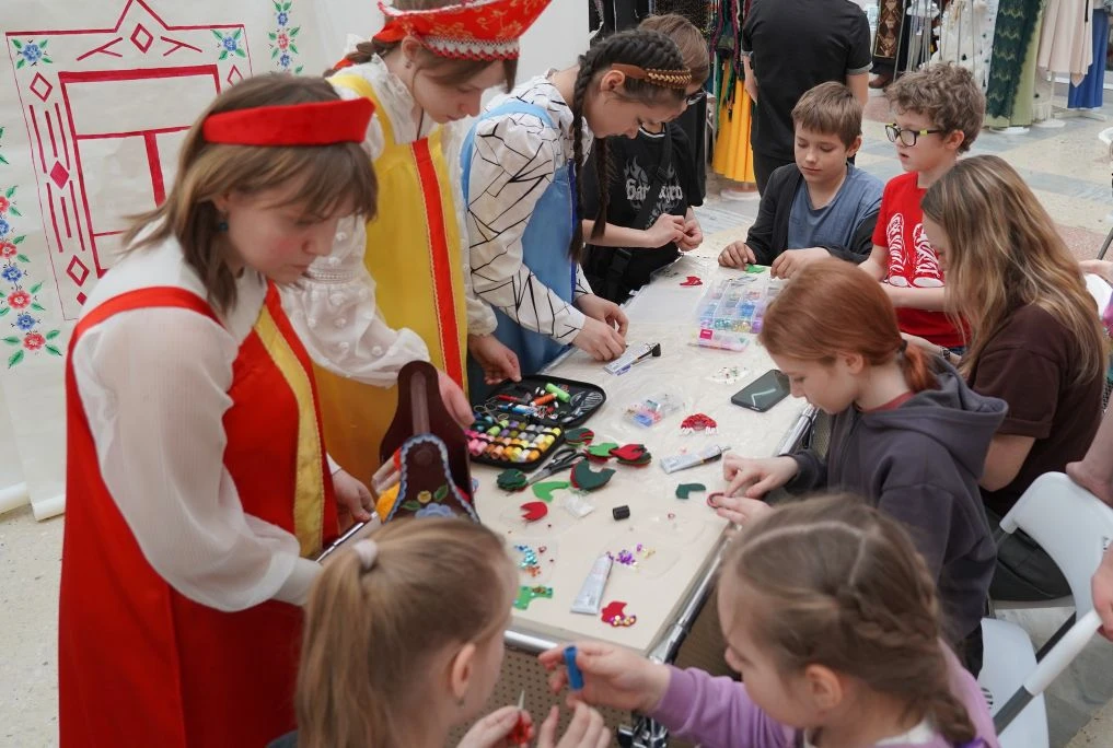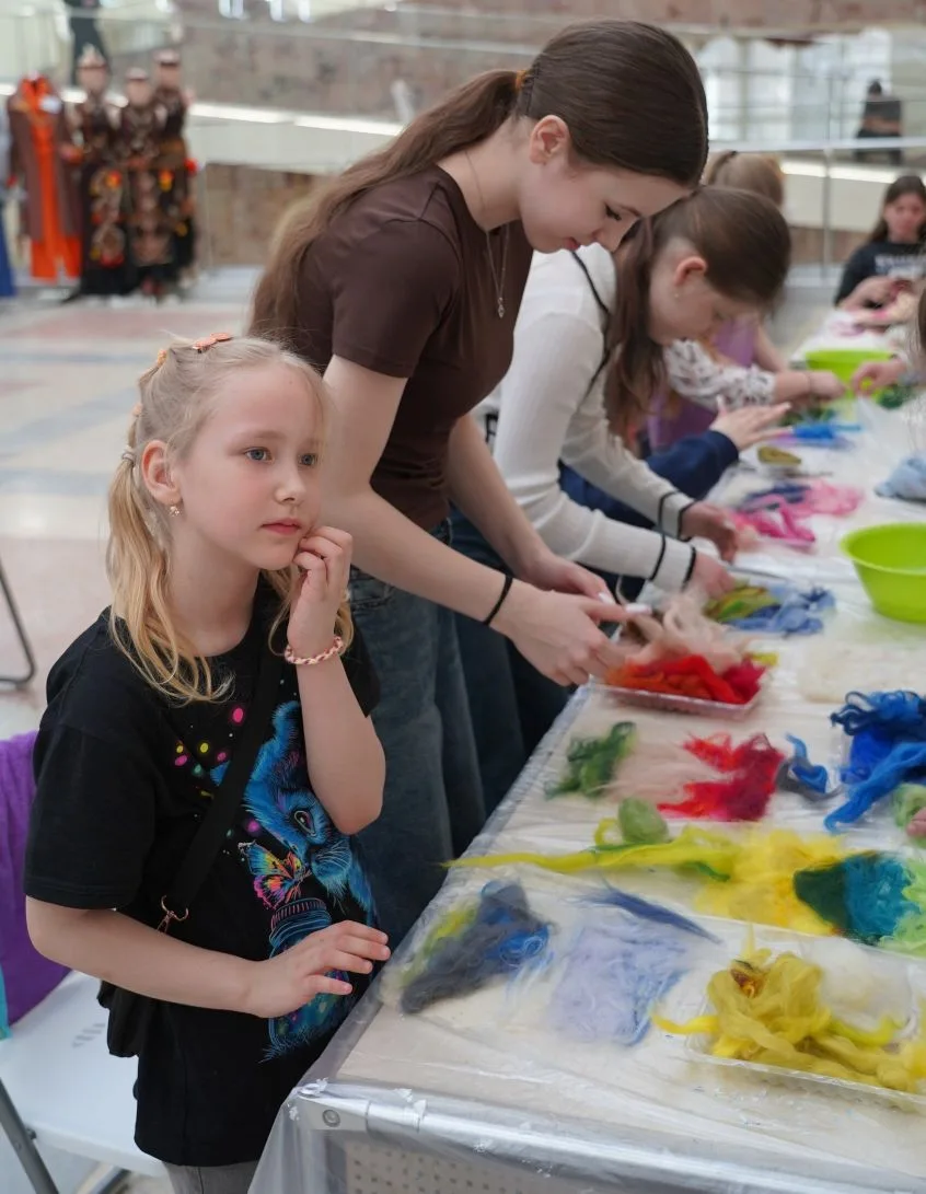Для всех желающих окунуться в мир дизайна и стиля, в фойе работала «Школа юного дизайнера» – серия увлекательных мастер-классов. Участники научились превращать остатки ткани в стильные брелоки, декор для одежды и украшения для волос. Освоили работу с жёсткой проволокой, создавая изящную подвеску-птицу «Грация». Сплели необычные резинки для волос на мастер-классе «Красота в каждой детали». Сделали подвеску для сумки в технике макраме и заколку-шляпку. А на мастер-классе «Вековые узоры» расписали шоперы урало-сибирской росписью - двойным мазком, с совами и птичками.