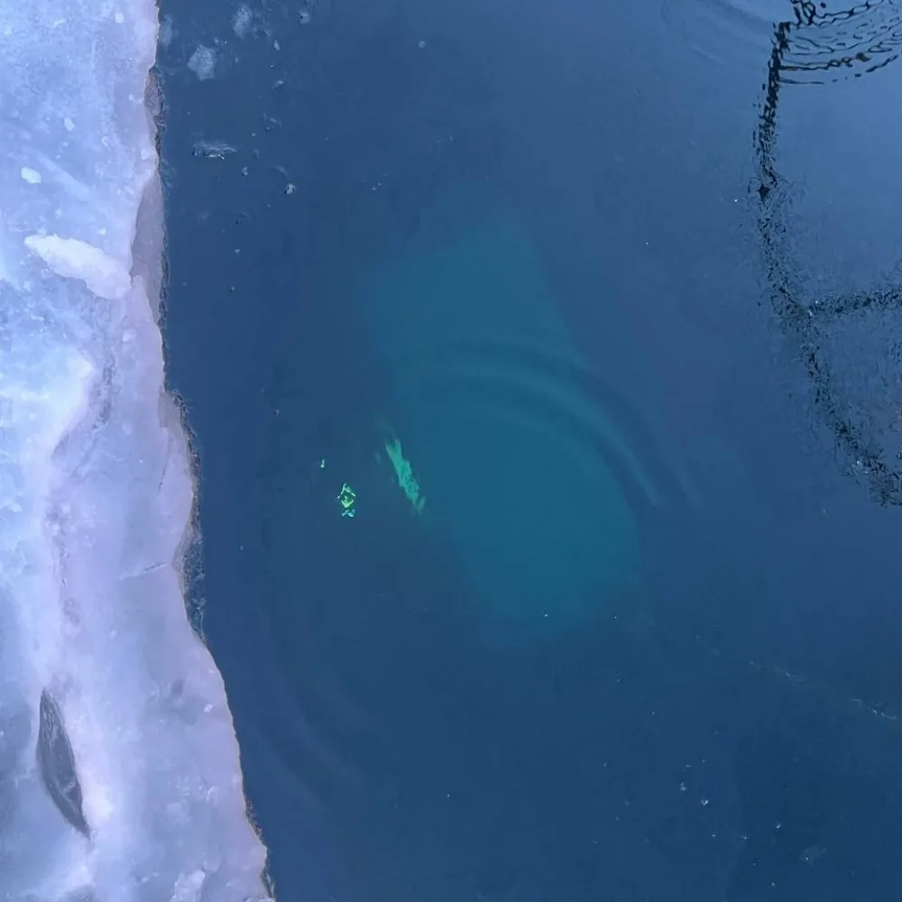 Провалившийся УАЗ удалось увидеть с помощью подводной камеры. Ширина ледового разлома, в который попал автомобиль, — 3 метра. Глубина в этом месте — 18 метров.