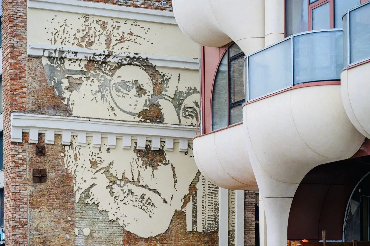На Саввинской набережной восстановлено уникальное панно с портретом Германа Гессе работы художника Vhils (Алешандре Фарту)