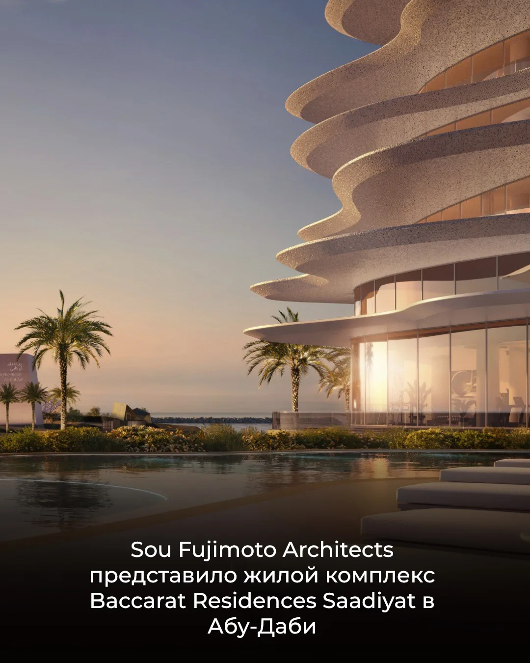 🌐 Японское бюро Sou Fujimoto Architects представило свой первый жилой проект в ОАЭ - комплекс Baccarat Residences Saadiyat рядом с музеем Гуггенхайма на острове Саадият в Абу-Даби. Два белых здания с волнообразными фасадами и этажами, расположенными в шахматном порядке, включают 77 резиденций, в том числе «небесные виллы», два пентхауса и панорамный бассейн. Форма комплекса вдохновлена береговой линией острова, а интерьеры решены в нейтральной гамме с округлыми формами.
