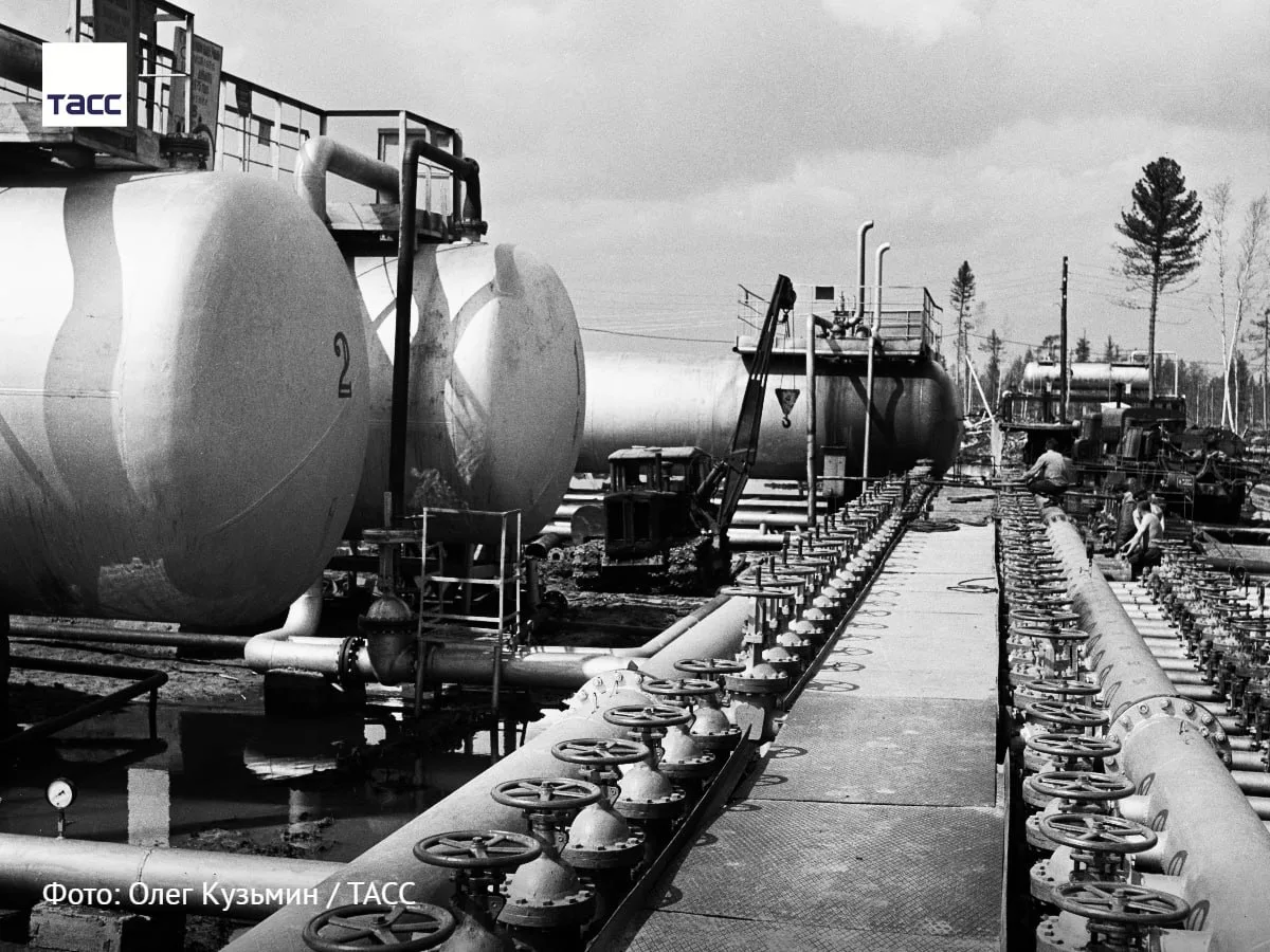 Общий вид дожимно-насосоной станции на Самотлорском нефтяном месторождении.