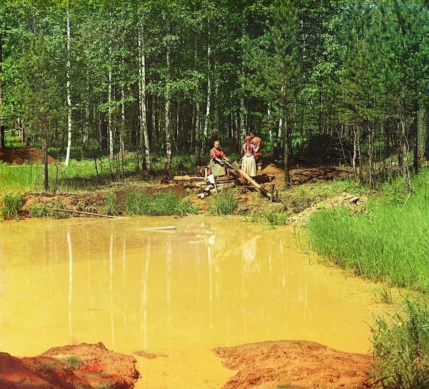 Промывка руды бурого железняка на Шиловском руднике в окрестностях деревни Макаровой.