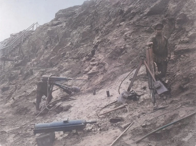 Рабочие с перфораторами на горе Благодати. Фото 1907 г.