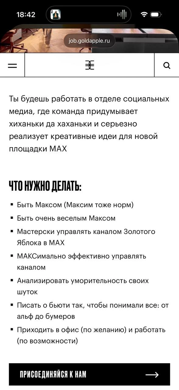 Вакансия для админов макса в Золотое яблоко. Кто из вас?)