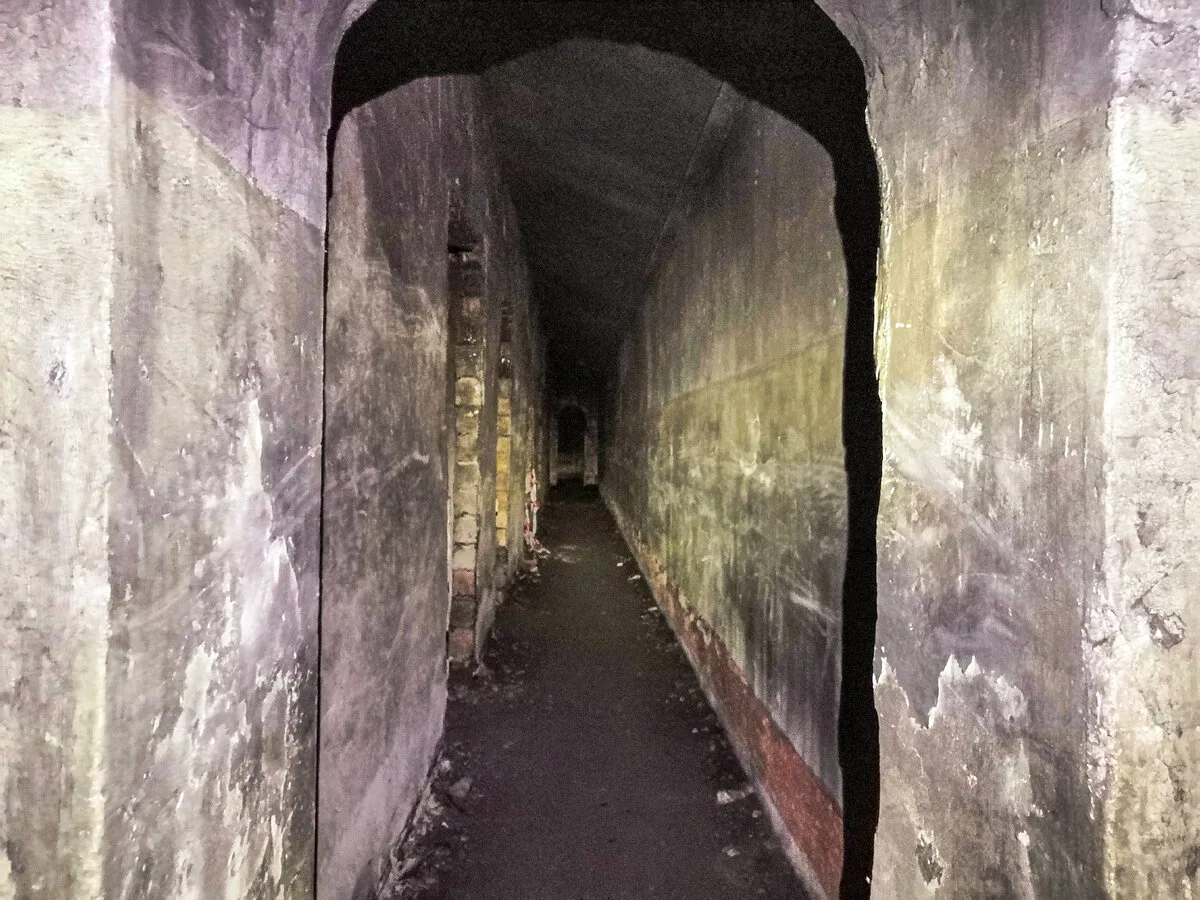Если пройти по берегу бухты, можно найти остатки заброшенного военного укрепления — пулеметного полукапонира, построенного в середине прошлого века для обороны побережья.