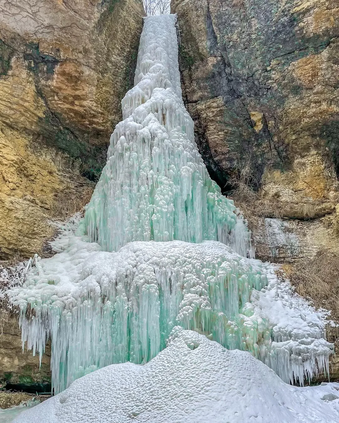 Летом водопад показывает себя только после обильных дождей. В сухую погоду поток может быть скромным. А вот зимой он раскрывается по-настоящему.