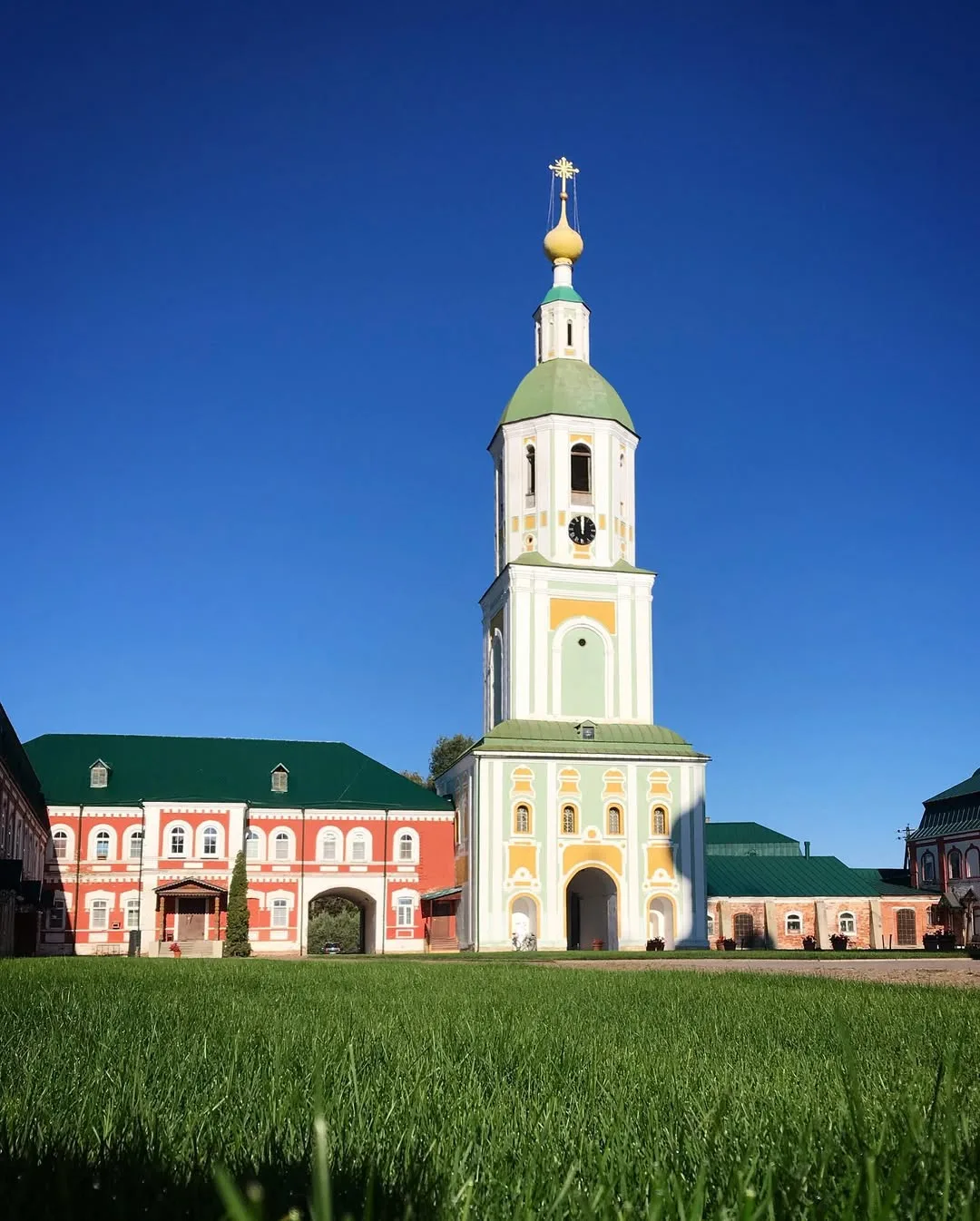 Зимой здесь случается чудо света. В короткие февральские дни, на закате, над заснеженными полями и лесами загорается голубовато-розовый свет. Он обволакивает белые стены, золотые купола и главный храм — Зачатьевский собор, построенный в необычном византийском стиле. В этот момент обитель кажется неземной.
