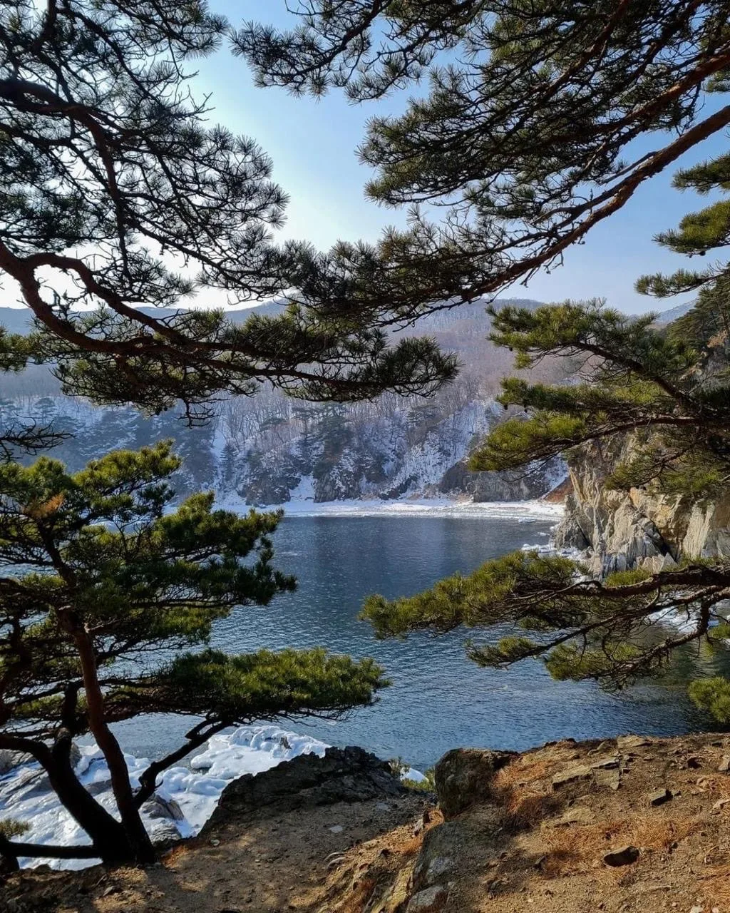 Пока большая часть России скована морозами, на самом юге Приморского края зима другая. Тут, на мысе Теляковского, снега мало, а море почти никогда не замерзает.