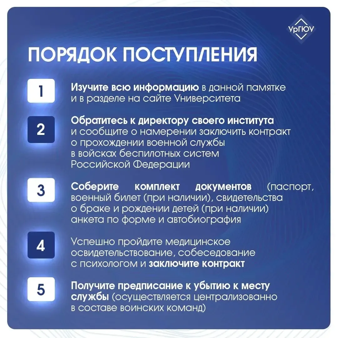 Если вы заинтересованы в поступлении на военную службу в войска беспилотных систем на условиях специального контракта, свяжитесь с ближайшим пунктом отбора по контракту или зайдите на сайт беспилотныевойска.рф