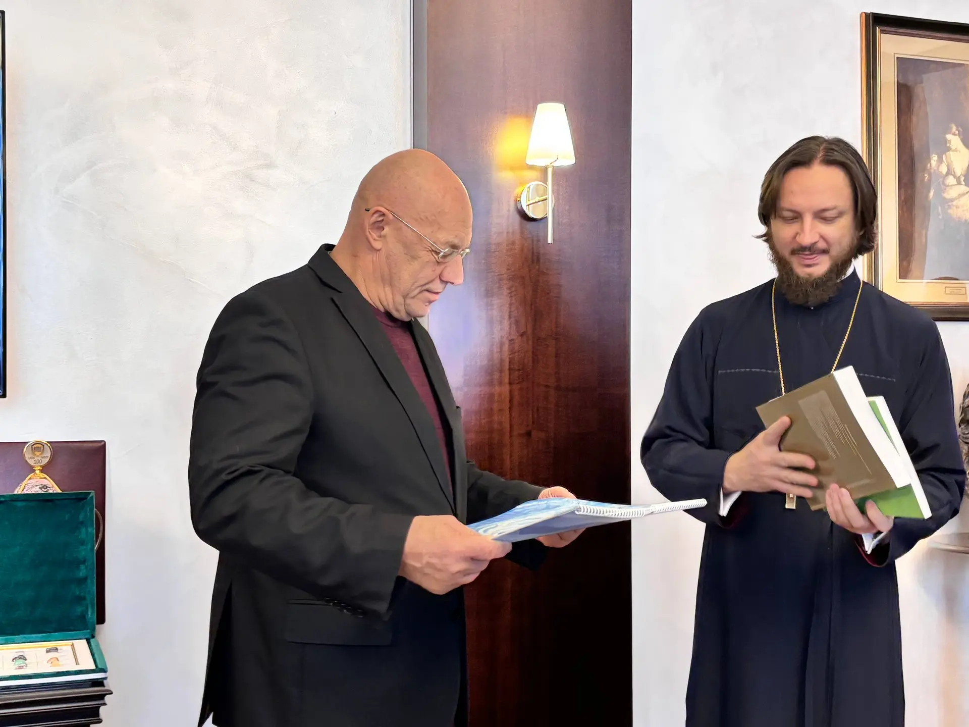 ✨Студенты Екатеринбургской духовной семинарии во главе с ректором иеромонахом Корнилием поздравили ректора УрГЮУ Владимира Бублика с Рождеством Христовым