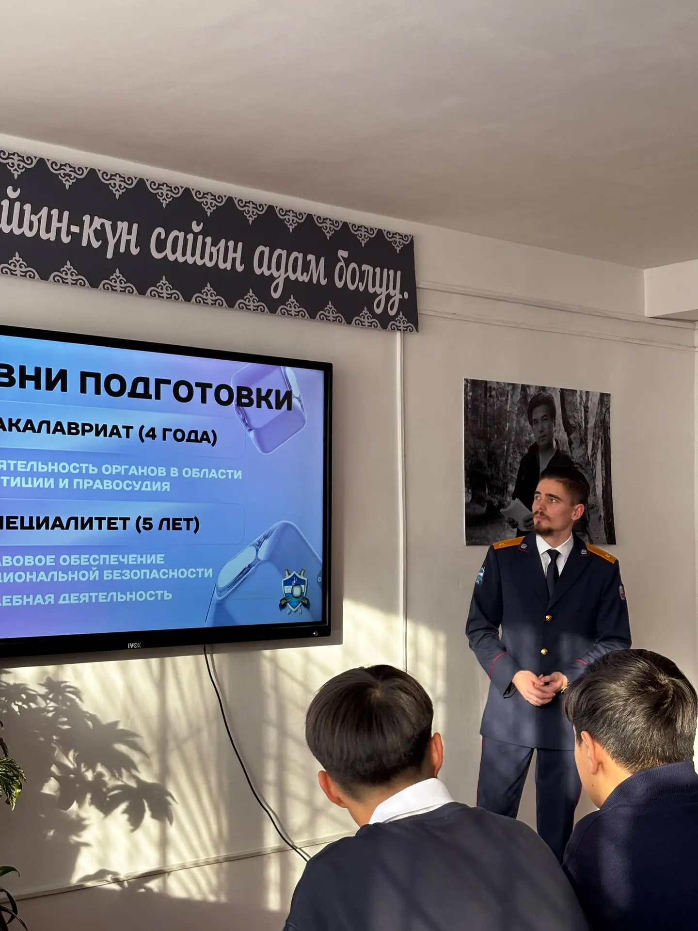 ⚡️ Студент Института юстиции Герман Врачинский провел встречу с учениками старших классов школы № 1 имени Д.П. Зубкова города Кант (Кыргызская Республика).