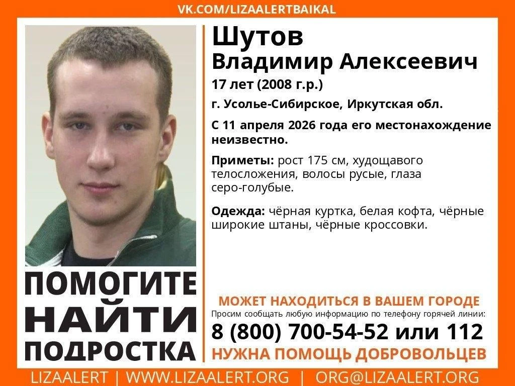 17-летний Владимир Шутов пропал 11 апреля, его местонахождение неизвестно.