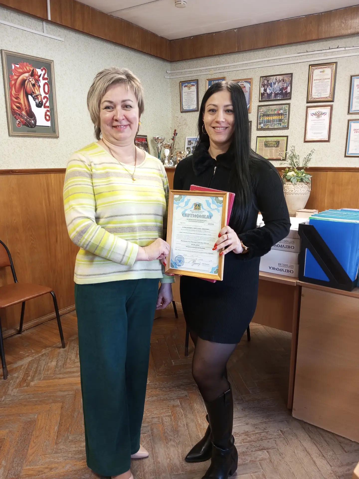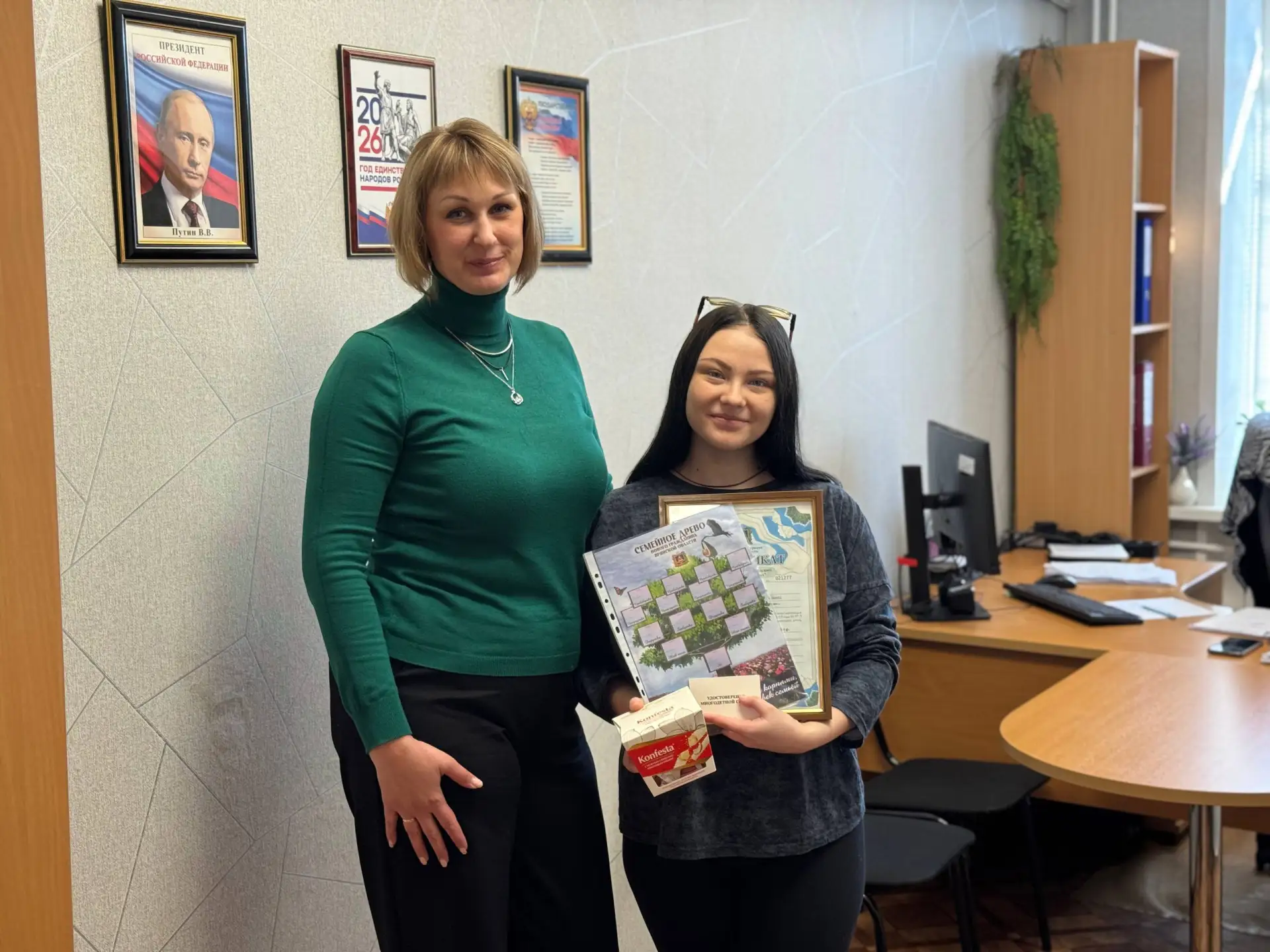11 марта 2026 года начальник отдела соцзащиты Фокинского района г. Брянска Светлана Родкина торжественно поздравила Светлану Алексютину с рождением детей, пожелала всем членам семьи крепкого здоровья, счастья, мира и благополучия, вручила сертификат на областной материнский капитал, который в связи с рождением двойни (третьего и четвертого ребенка) составил 400 000,00 рублей.