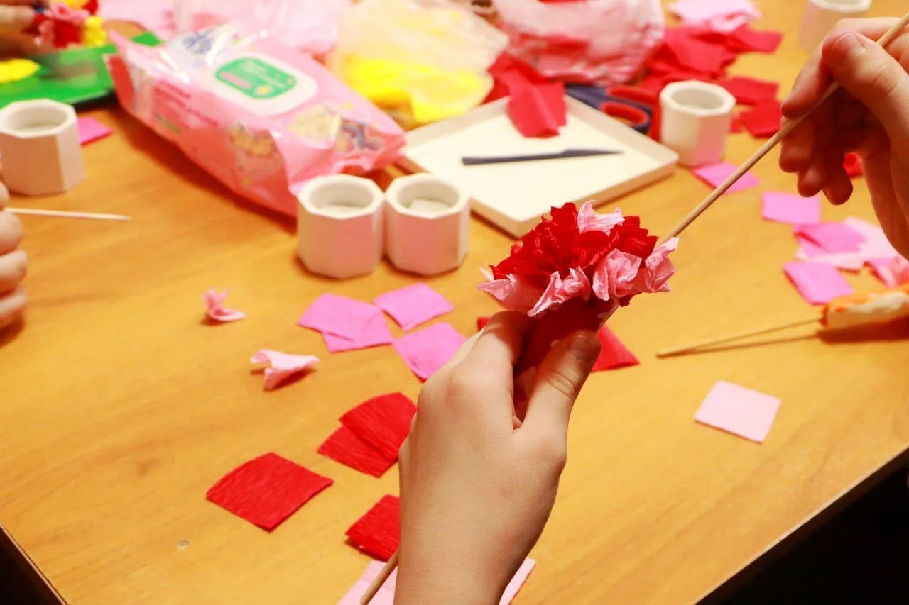 Каждый ребёнок с трепетом творил свой уникальный цветок, словно нашептывая поздравления любимой маме. В эти творения они вложили не только ловкость рук, терпение и фантазию, но и ту самую, искреннюю, безграничную любовь, которая греет душу.