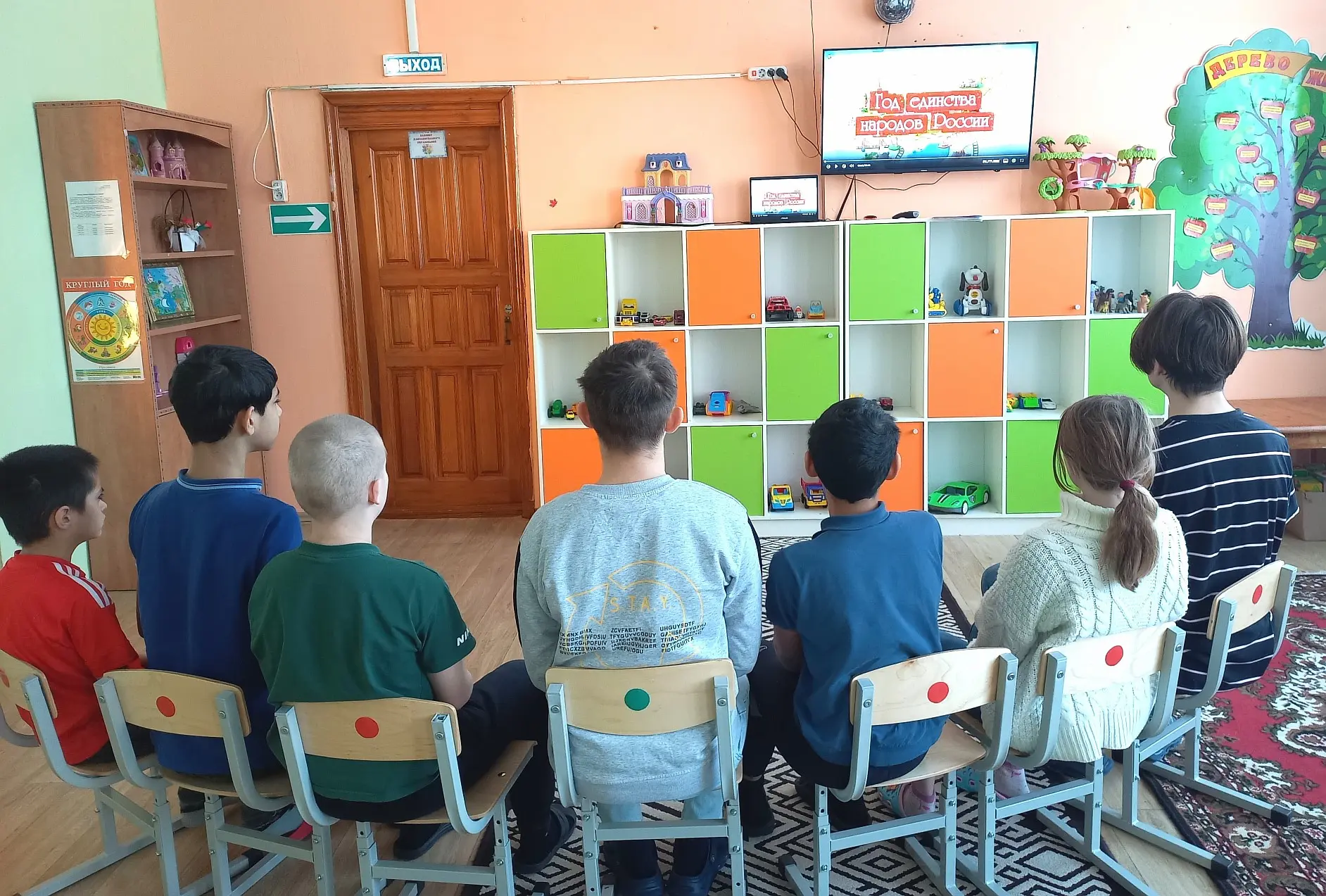 Ребята с интересом посмотрели мультфильм «Год единства народов России», познакомились с традициями и обычаями народов России, их национальными костюмами и достопримечательностями.Участвуя в творческой работе, дети подготовили демонстрационные материалы и оформили красочные стенды, посвящённые Году единства народов России.