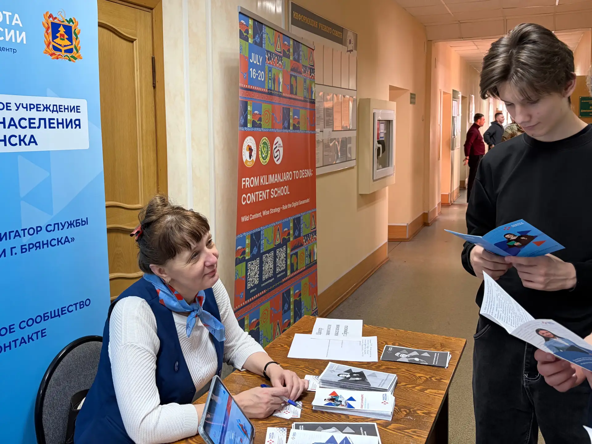 Специалисты Кадрового центра «Работа России» города Брянска представили свою службу на отдельной площадке: они консультировали участников по мерам государственной поддержки, рассказывали о возможностях единой цифровой платформы «Работа России» и информировали студентов о том, как самостоятельно ознакомиться с актуальными вакансиями.