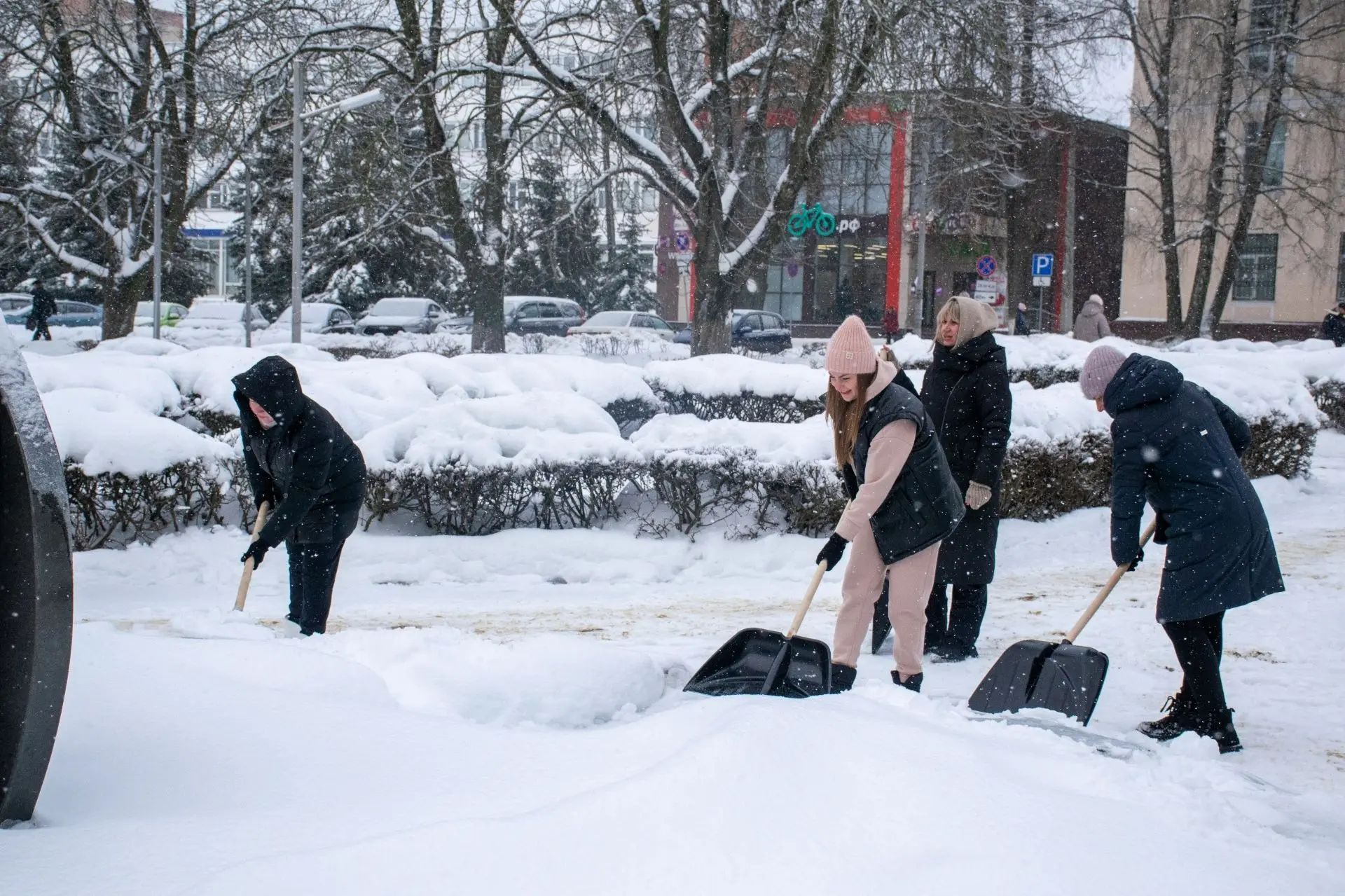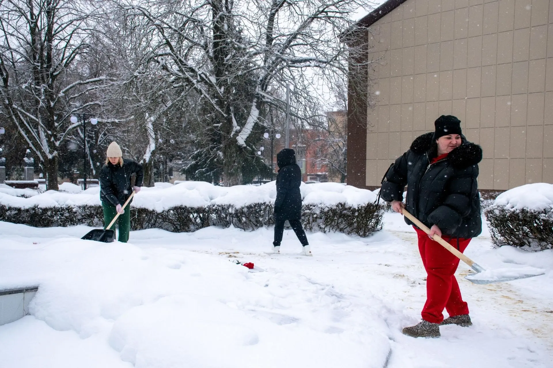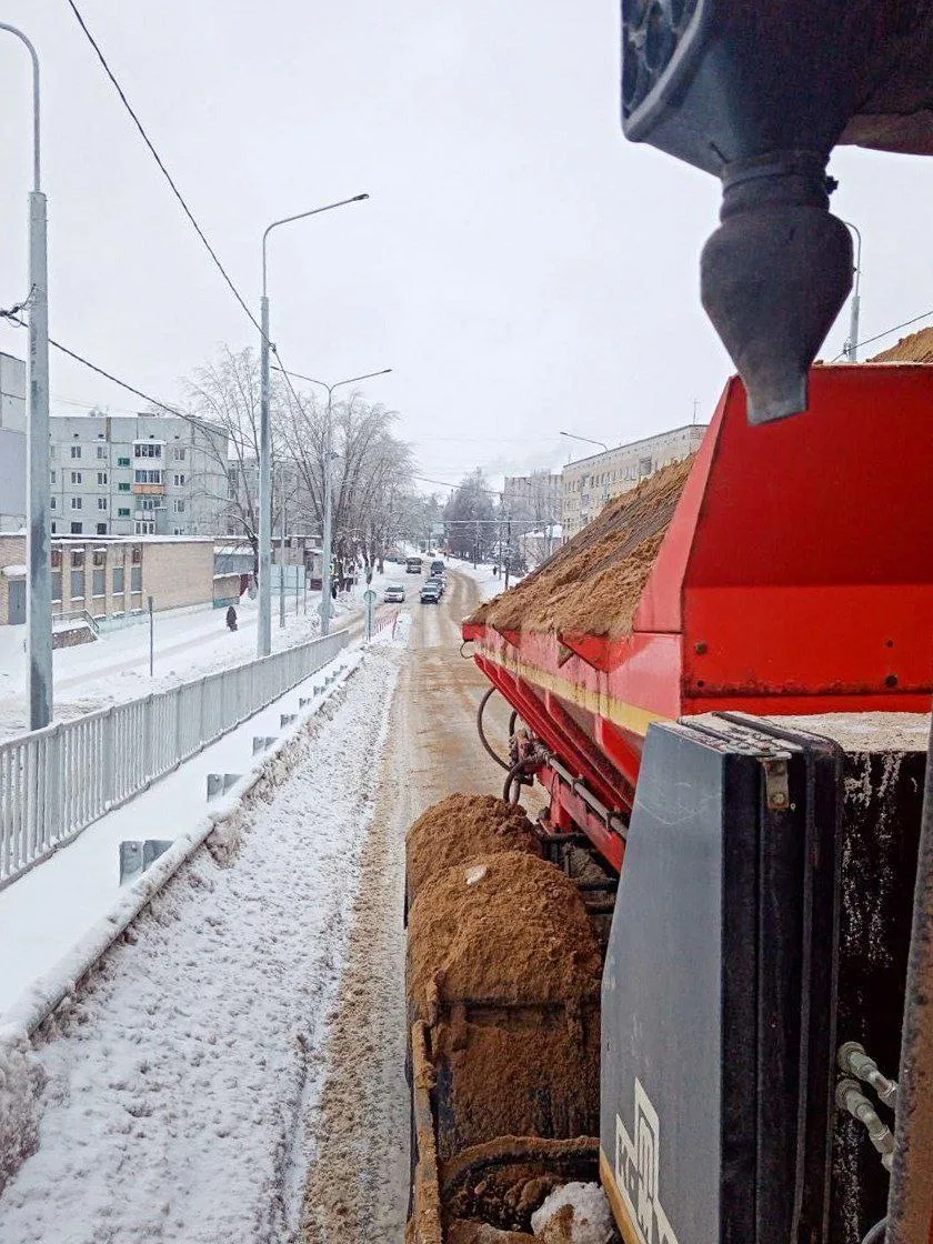 Работы продолжаются в течение дня: приоритет — центральные улицы, подъезды к социально значимым объектам и пешеходные зоны. Опасные участки обрабатываются противогололёдными материалами. Вечером к работе приступит вторая смена.