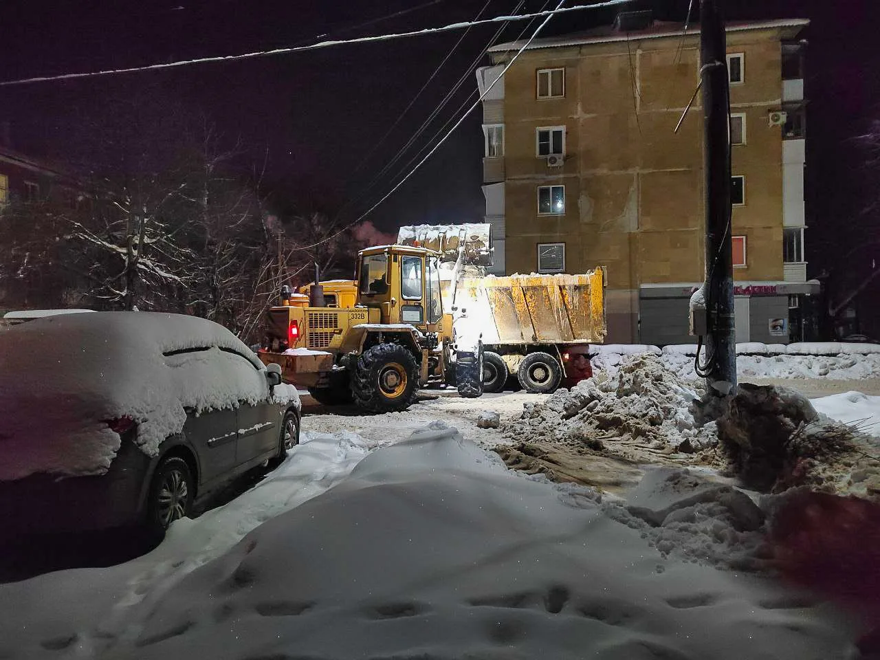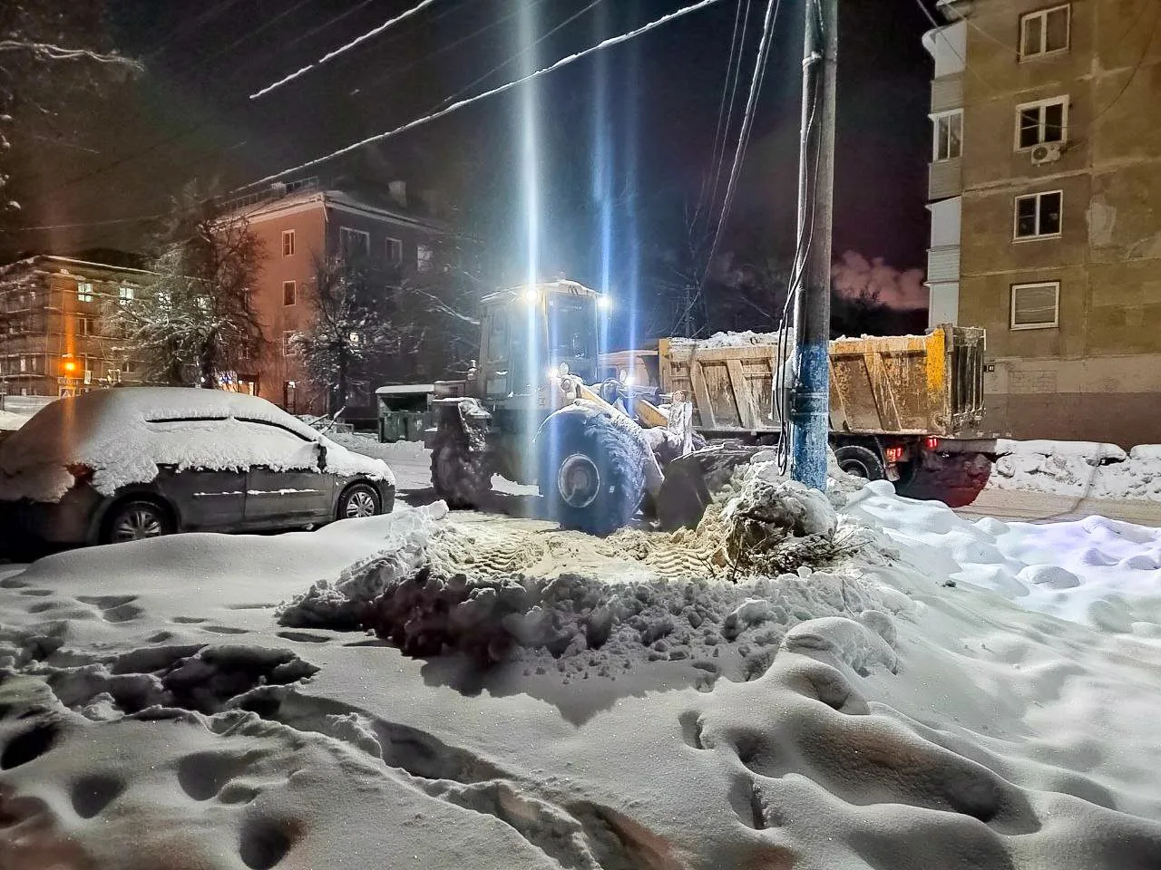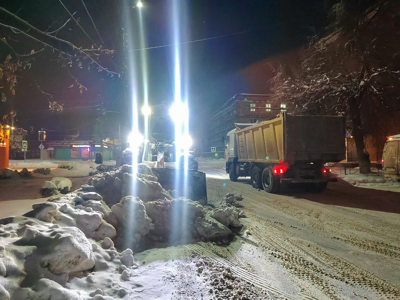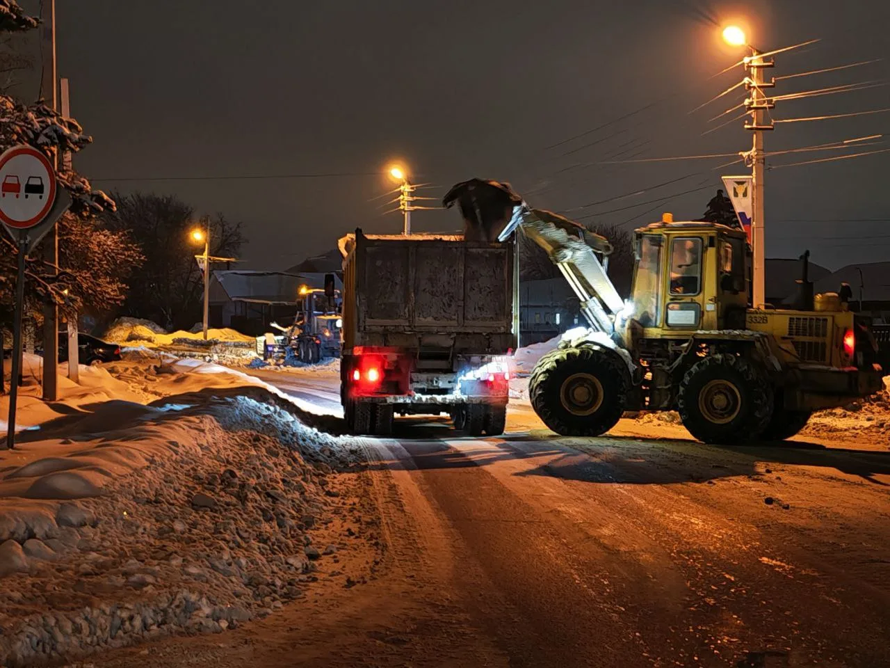 🛠 На участке от дома № 39 до дома № 91 работают 4 самосвала и 2 фронтальных погрузчика, которые будут убирать снег до 03:00 ночи.
