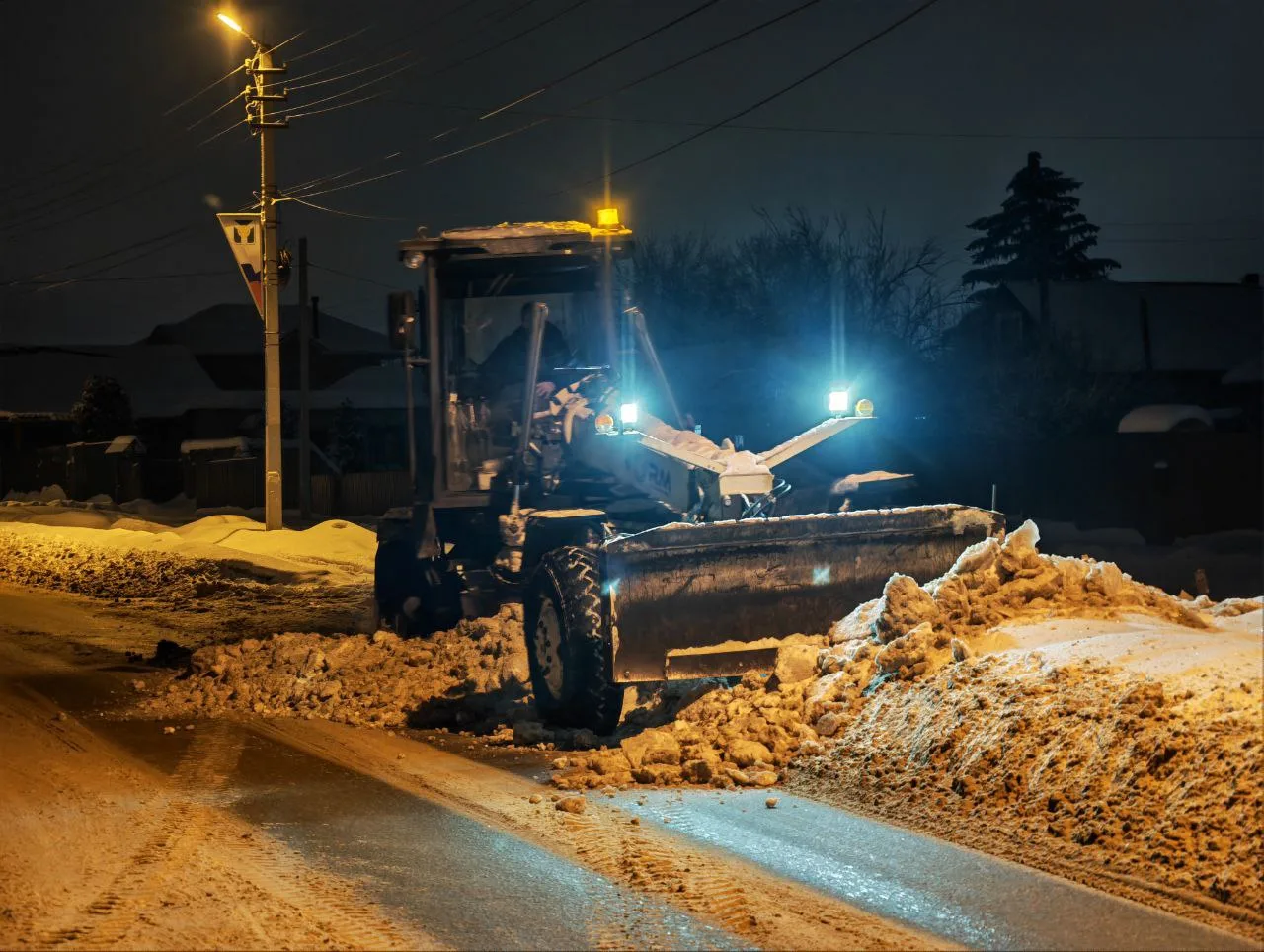 С 4 часов утра управление городского хозяйства ведёт уборку снега на улицах города. Задействованы 6 единиц техники — погрузчики, грейдер и комбинированные дорожные машины.