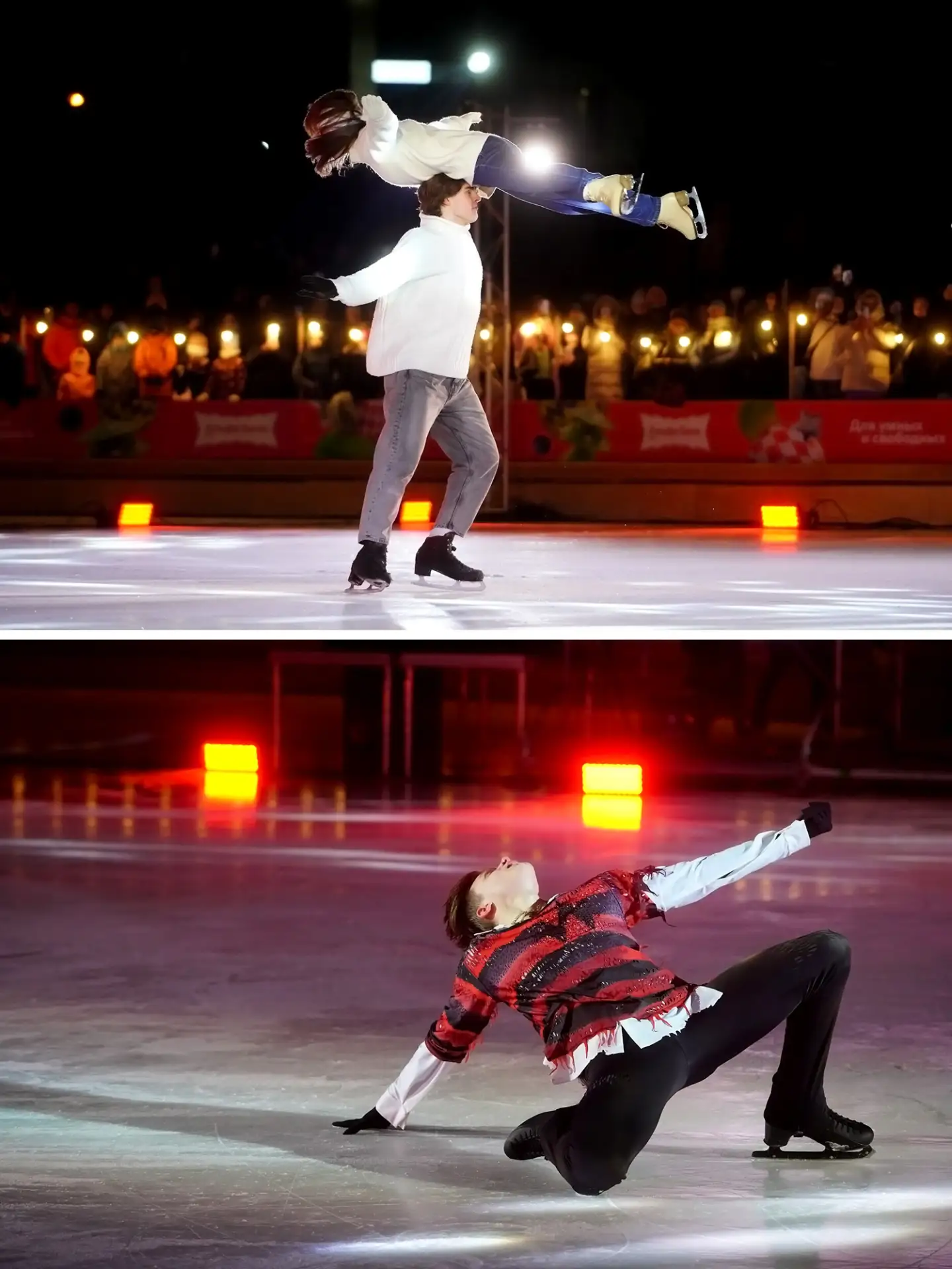 Во время выступлений были исполнены сложные элементы, включая эффектные сальто на коньках.