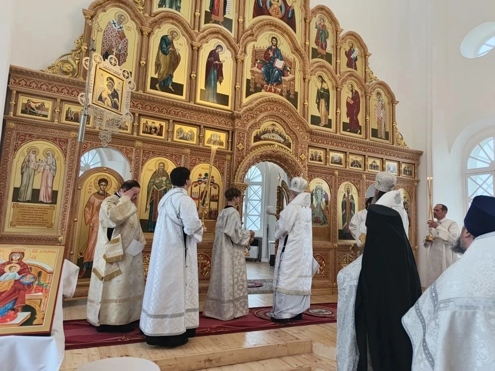 А в отреставрированном Батуринском храме сегодня освятили иконостас верхнего предела, созданный мастерами Свято-Троицкого братства в Курской области.