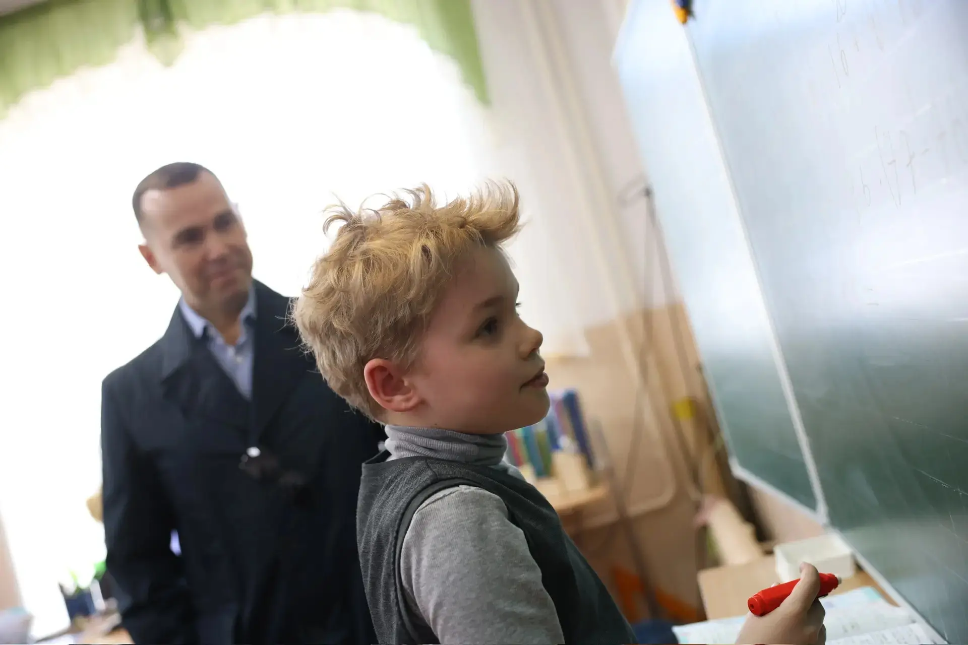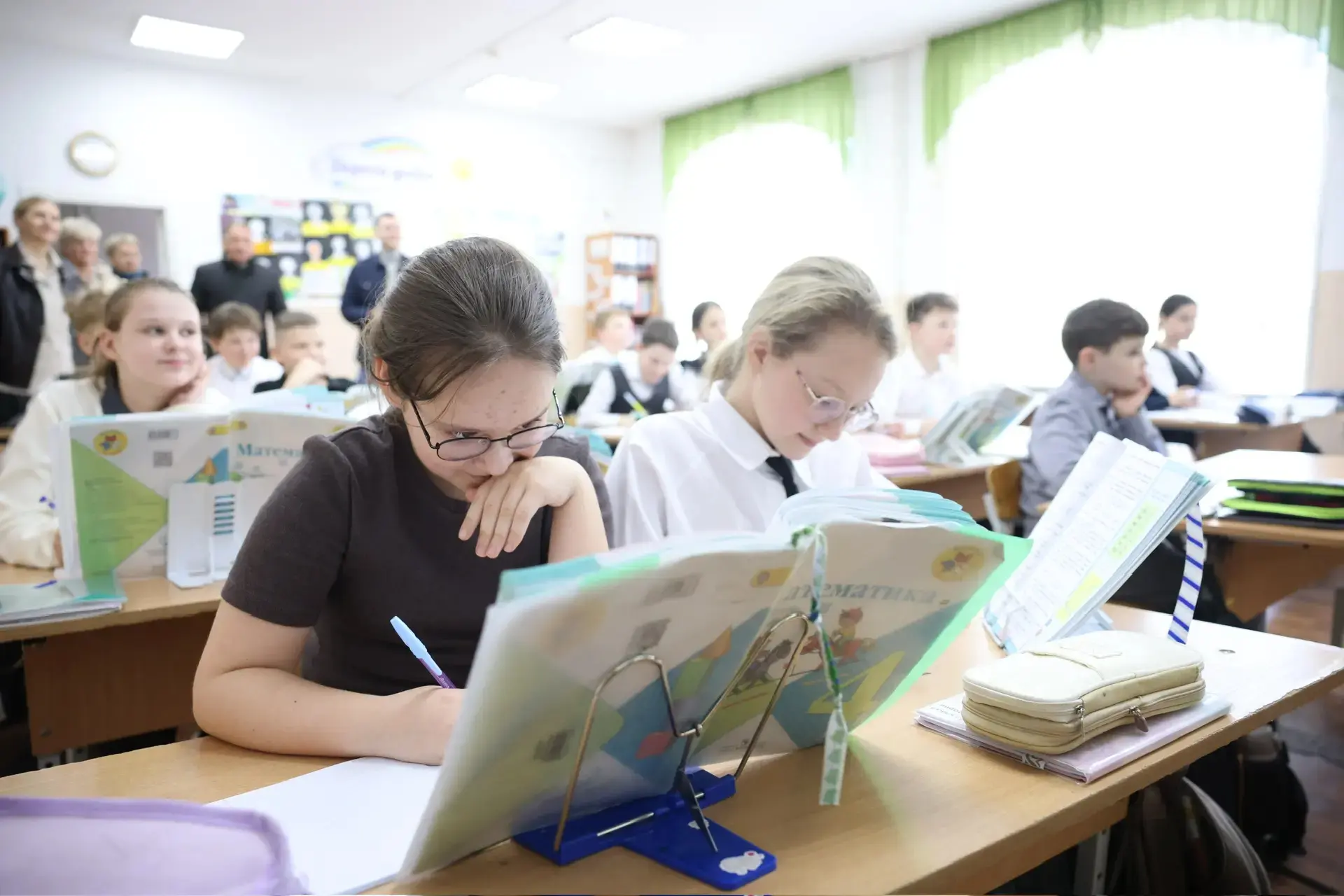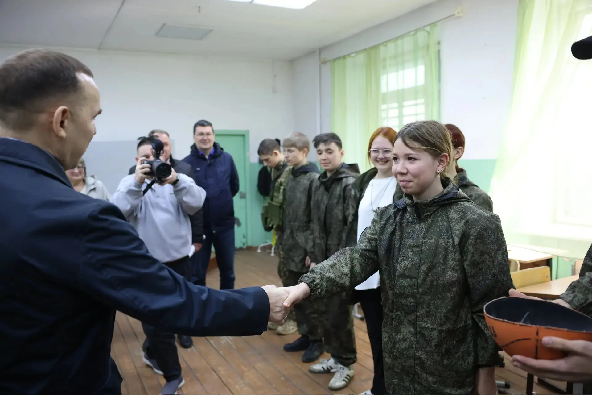 На занятиях отряда "Застава" Яна быстрее всех собирает автомат). А Роман из 4 В решал задачу по математике, когда мы пришли в его класс. Немного подрастерялся), но он бойкий парень. Сказал, что давно пора было школу привести в порядок). Сделаем). Рядом со школой Гагаринский экопарк, который также в два захода благоустроили не так давно, выделив на эту задачу более 23,4 млн рублей.