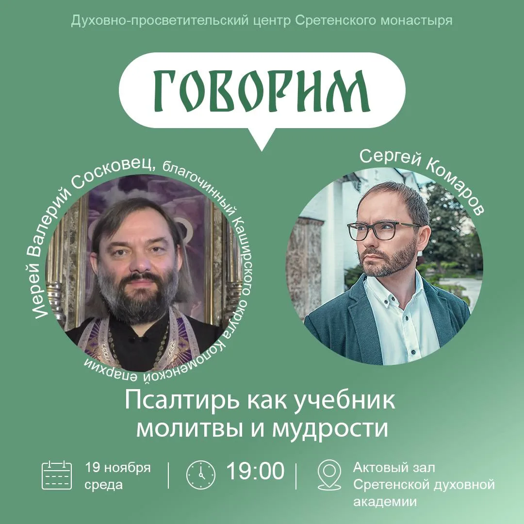Встреча пройдет в актовом зале Сретенской академии 19 ноября. Начало в 19:00.