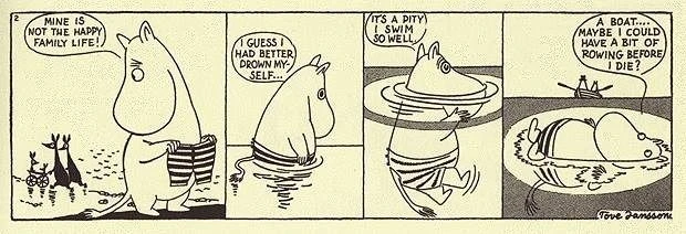 Даже вдвоем с братом они едва-едва успевали за потребностями издательства и вынуждены были рисовать всякую попсовую шнягу, вроде комиксов «Муми-тролли на Диком Западе». Там муми-папа по ошибке изобрел машину времени, которая перенесла муми-троллей во времена ковбоев, шерифов и салунов.