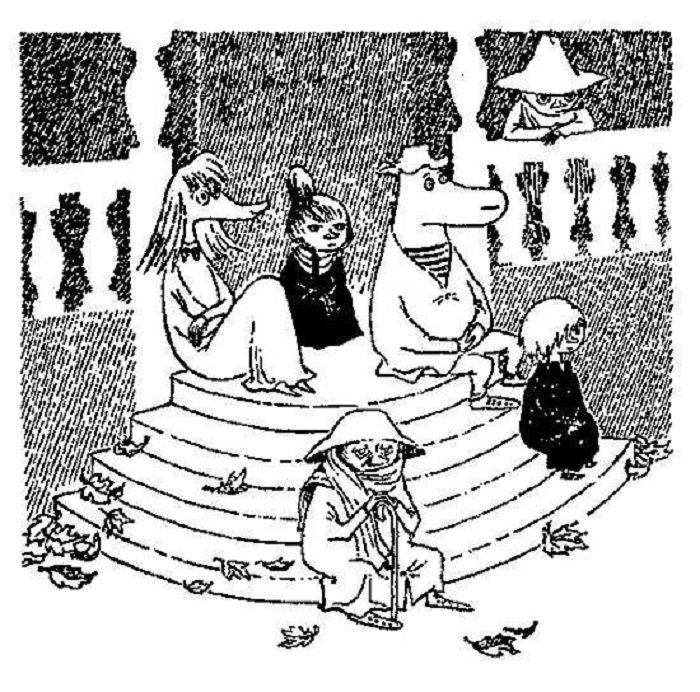 А в Муми-доле собираются гости — от близких друзей до каких-то совсем левых персонажей. Гости ждут возвращения исчезнувших х