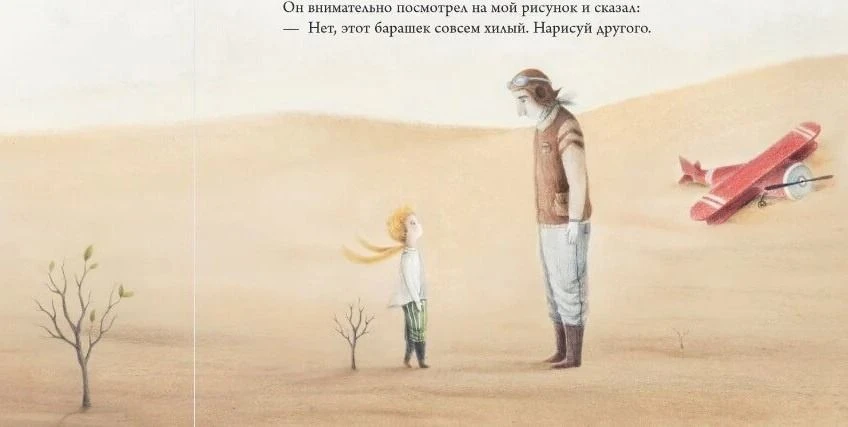 "Маленький принц" начинается с летчика, совершившего вынужденную посадку в пустыне.