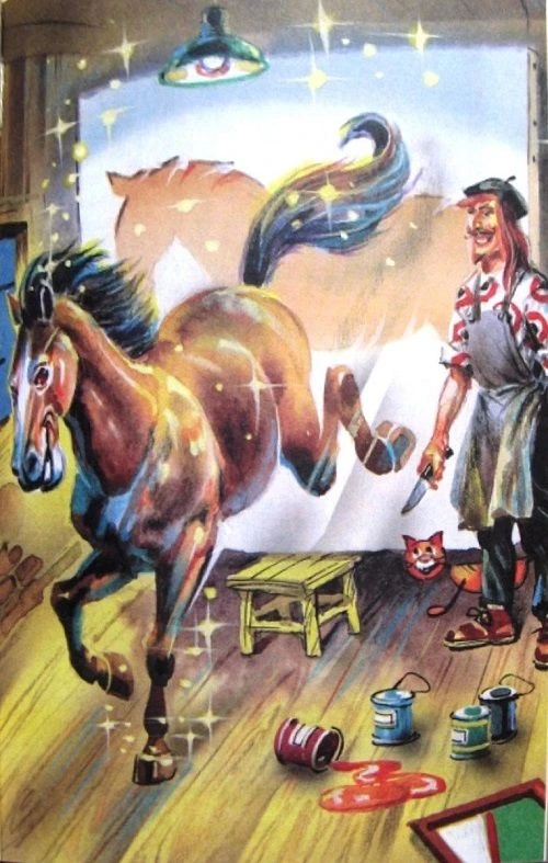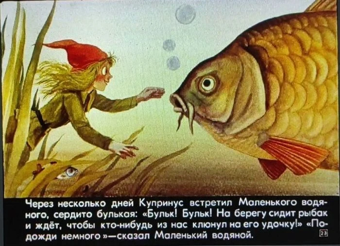 То же самое и в диафильме совсем еще молодого Леонида Владимирского, которому еще только предстояло прославиться иллюстрациями к "Приключениям Буратино" и "Волшебнику Изумрудного города".