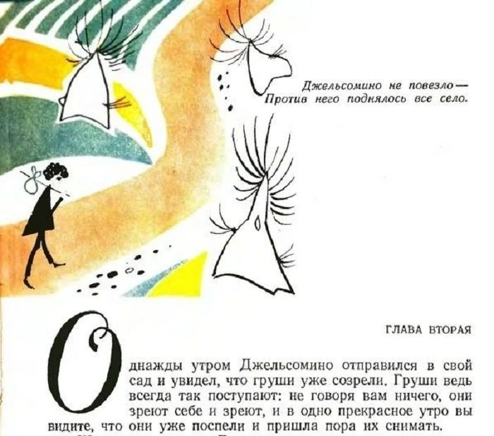 Факт четвертый. В зените славы. Очень быстро Чиполлино становится культовым, как бы сегодня сказали, героем советских школьников. Книга "Приключения Чиполлино" переиздается чуть не ежегодно тиражами в 100-300 тыс. экземпляров, ее иллюстрируют лучшие художники.
