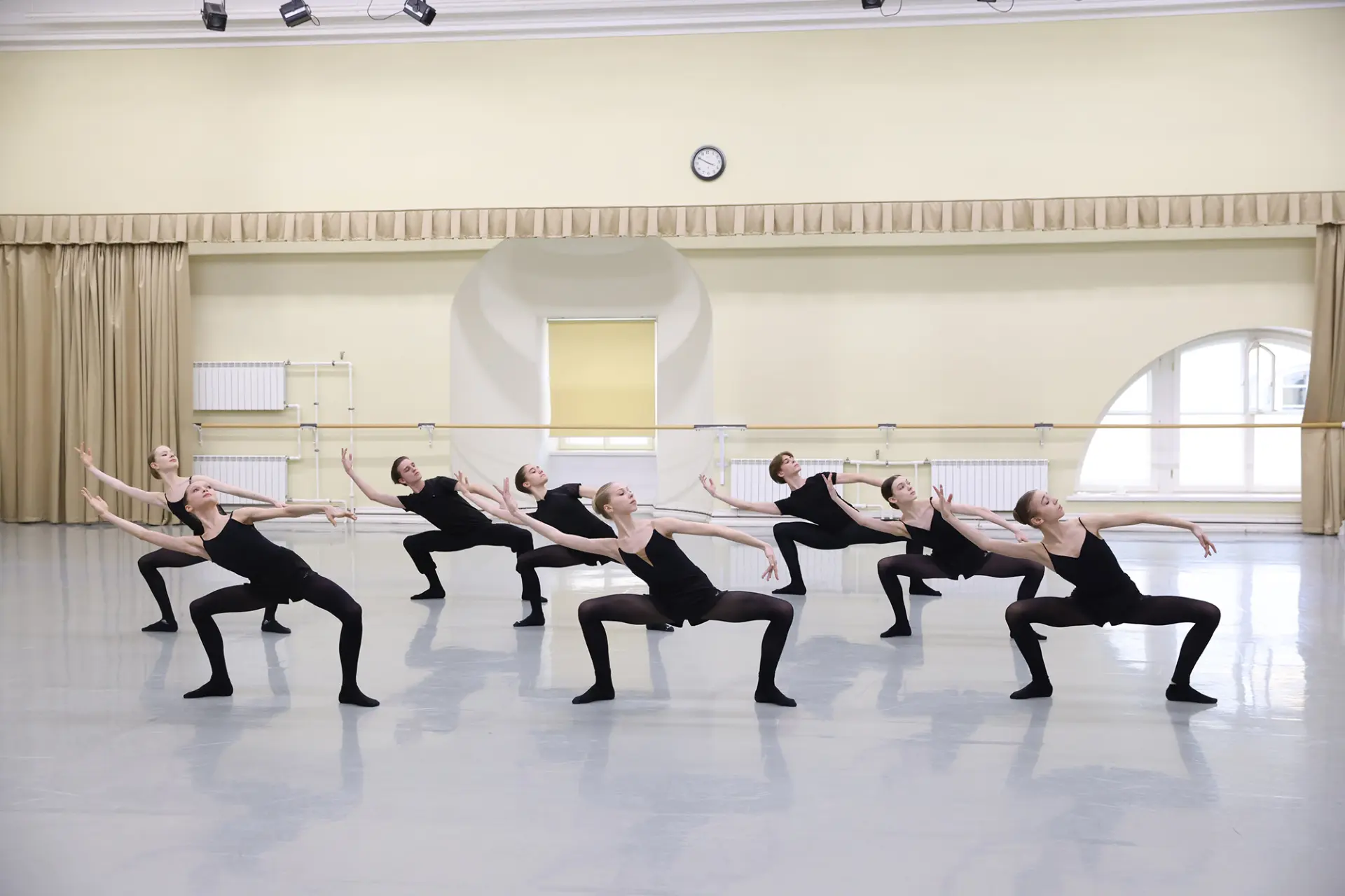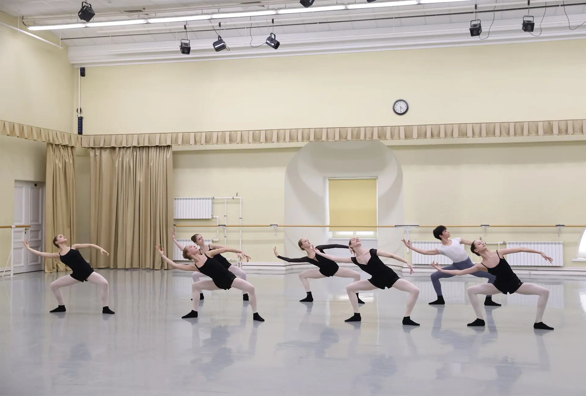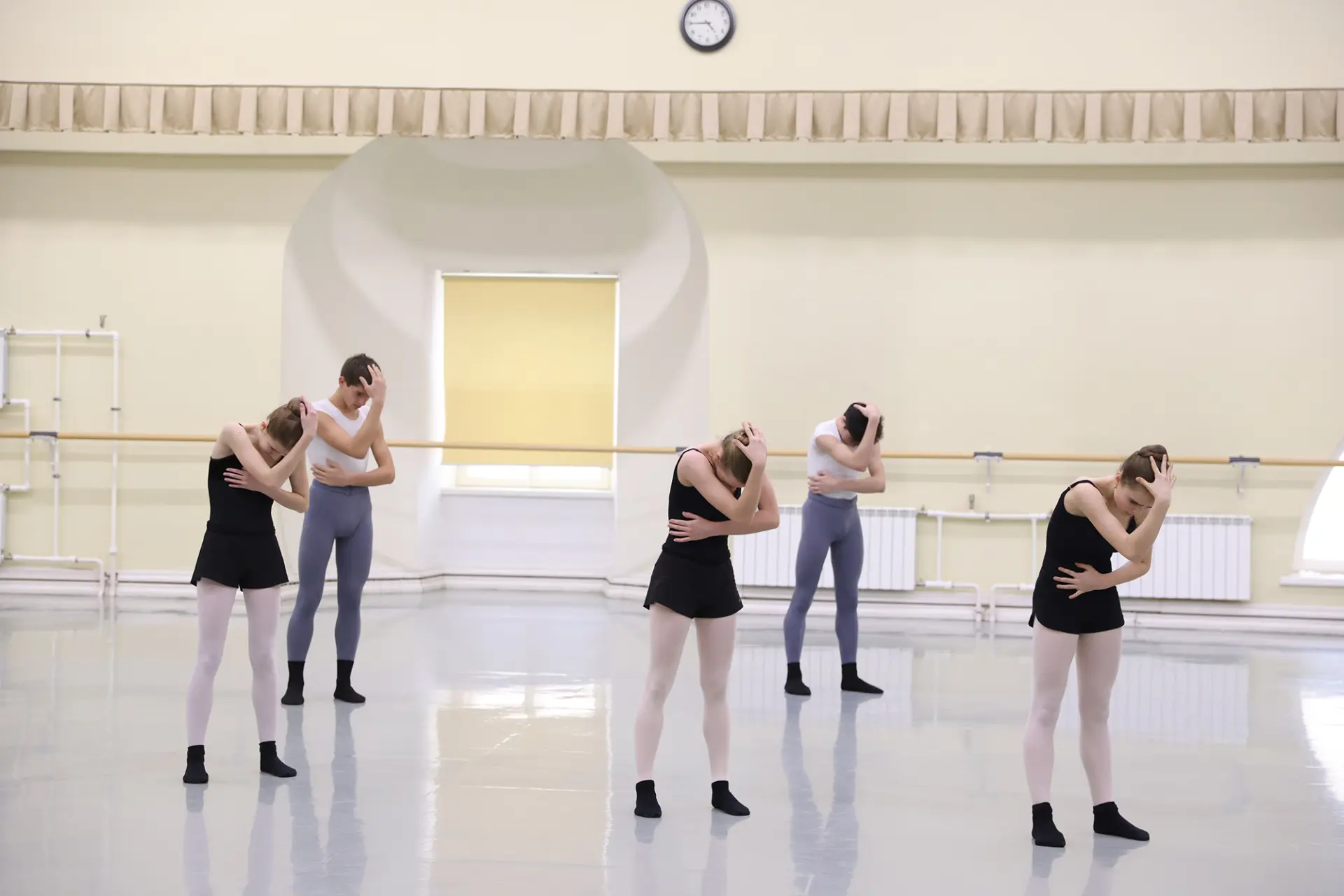 Первым учащиеся сдают экзамен по современному танцу.